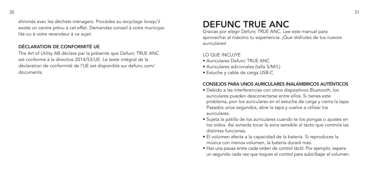 TRUE ANC - Auriculares Defunc - Manual de uso y guía de instrucciones gratis