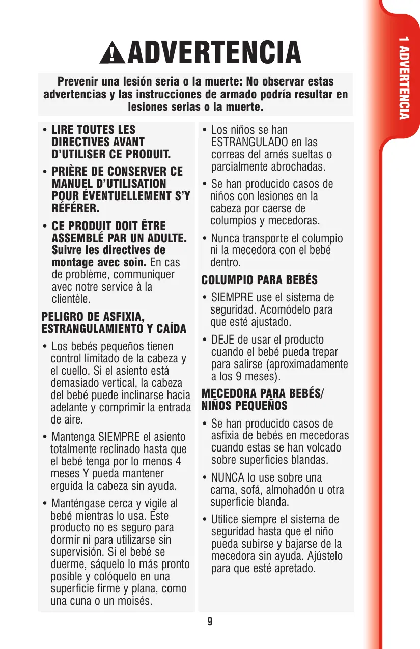 NE PAS régler la hauteur lorsque l'enfant se trouve dans le produit. NO ajuste la altura con el niño en el producto.