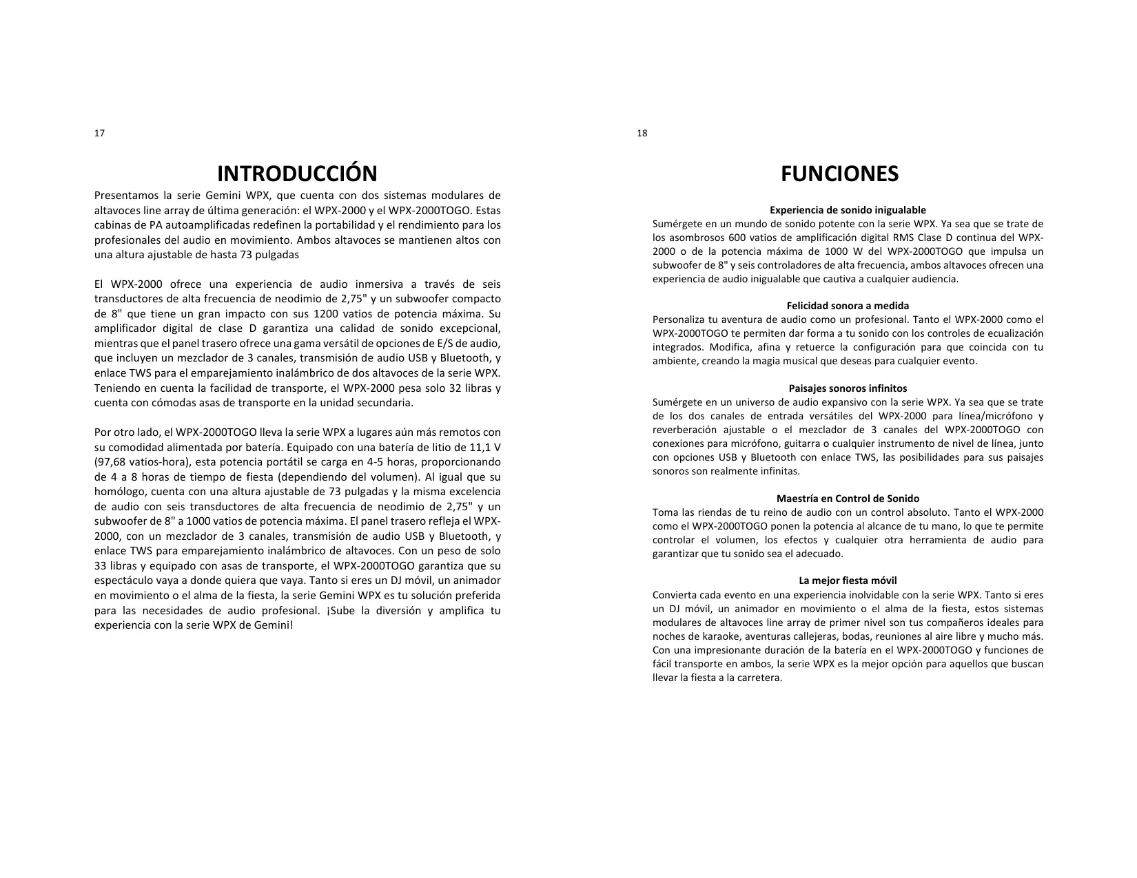 Encuentra gratis el manual del aparato WPX-2000 GEMINI en formato PDF.
