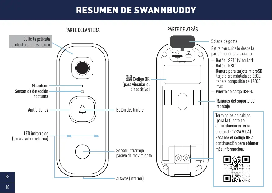 Descarga las instrucciones para tu Vidéophone en formato PDF gratis! Encuentra tus instrucciones SwannBuddy™ 4K - SWANN y toma tu dispositivo electrónico nuevamente en la mano. En esta página están publicados todos los documentos necesarios para el uso de su dispositivo. SwannBuddy™ 4K de la marca SWANN.