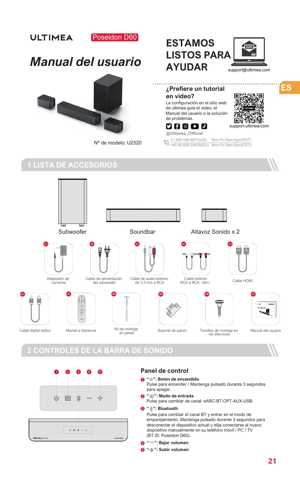 U2520 - Barra de sonido ULTIMEA - Manual de uso y guía de instrucciones gratis