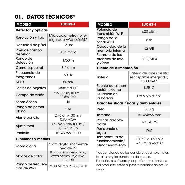 | Características técnicas principales | Resolución de la imagen: 640 x 480 píxeles, Rango de temperatura: -20°C a 650°C, Sensibilidad térmica: < 50 mK |