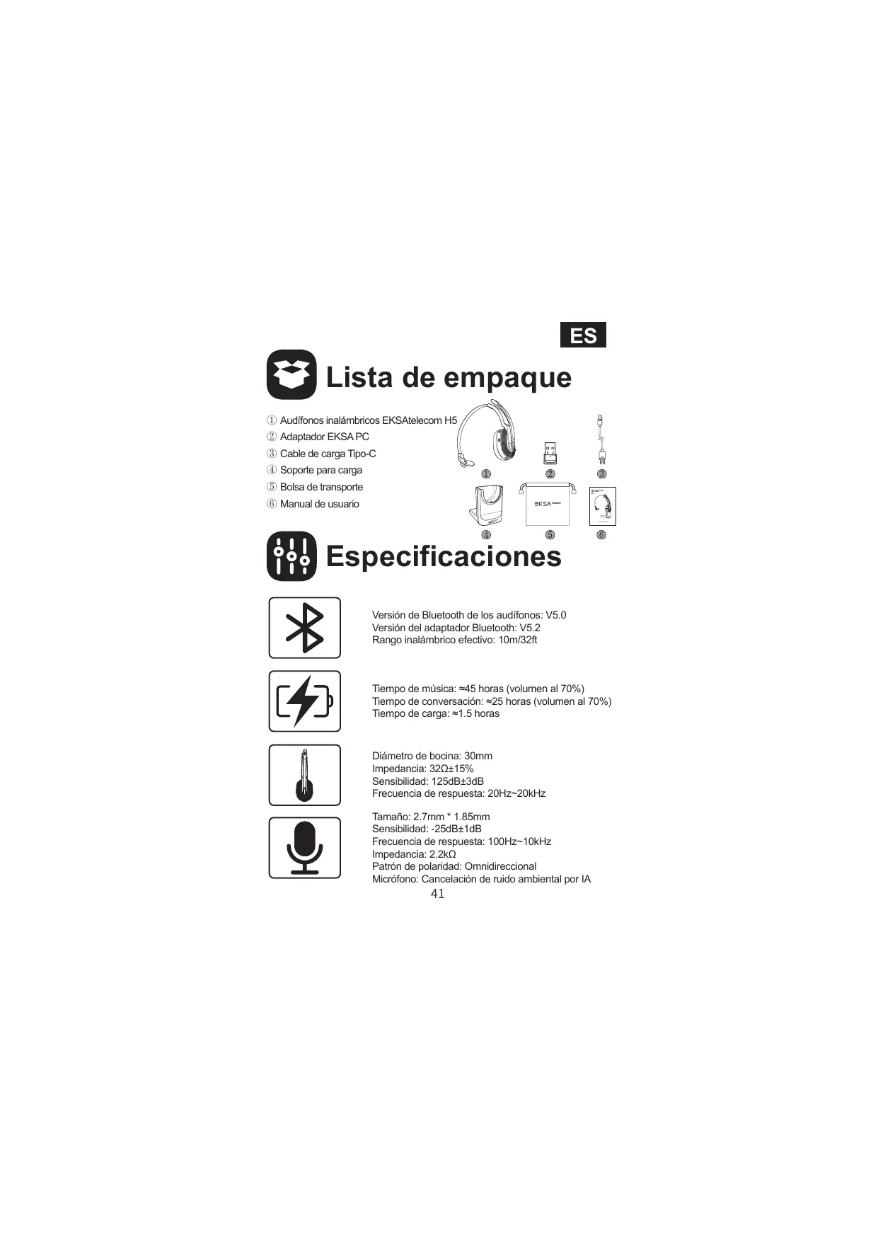 H5 - Auriculares EKSA - Manual de uso y guía de instrucciones gratis