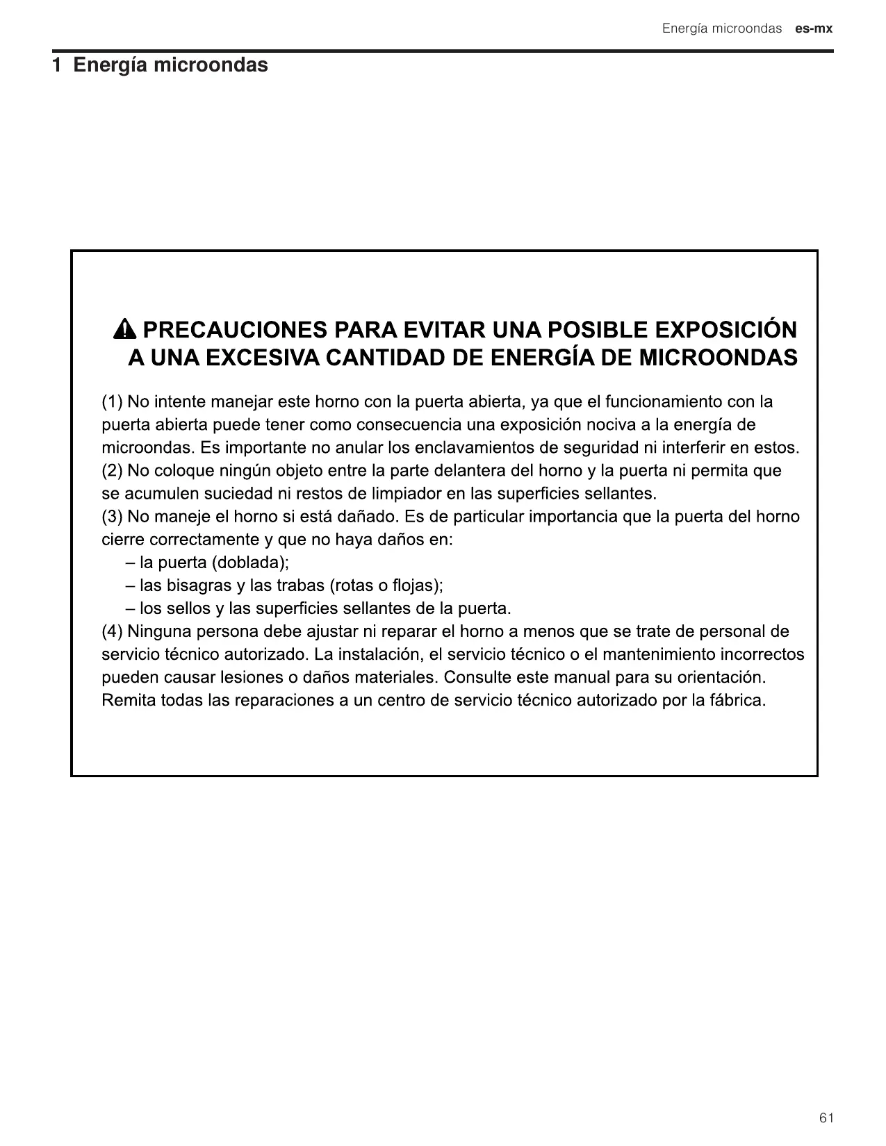 > _Comprobar posibles daños en la puerta del aparato. No poner en funcionamiento el aparato si la puerta presenta daños.