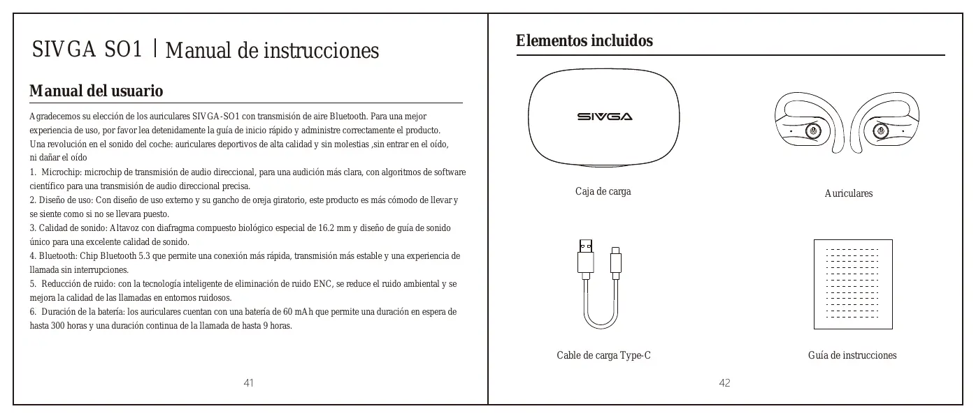 Agradecemos su eleceiôn de los auriculares SIVGA-SO1 con transmisiôn de aire Bluetooth. Para una mejor experieneia de uso, por favor lea detenidamente L