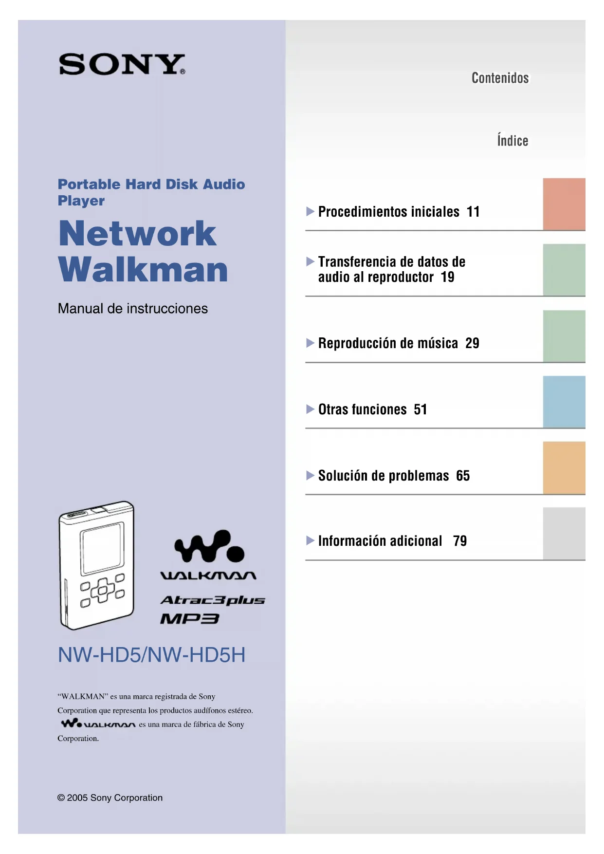 NWHD5H - Reproductor de mp3 SONY - Manual de uso y guía de instrucciones gratis