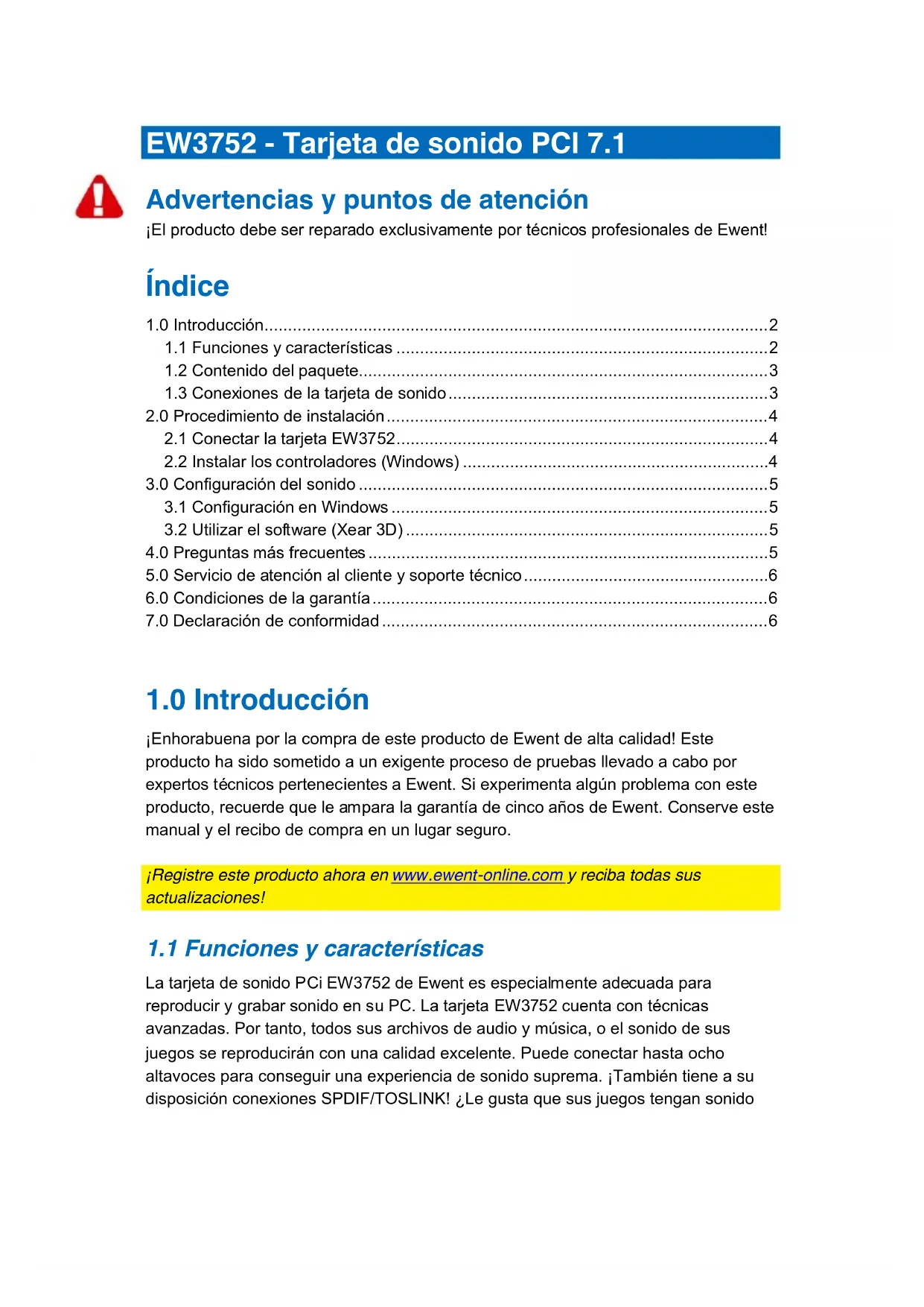 EW3752 - Tarjeta de sonido Ewent - Manual de uso y guía de instrucciones gratis