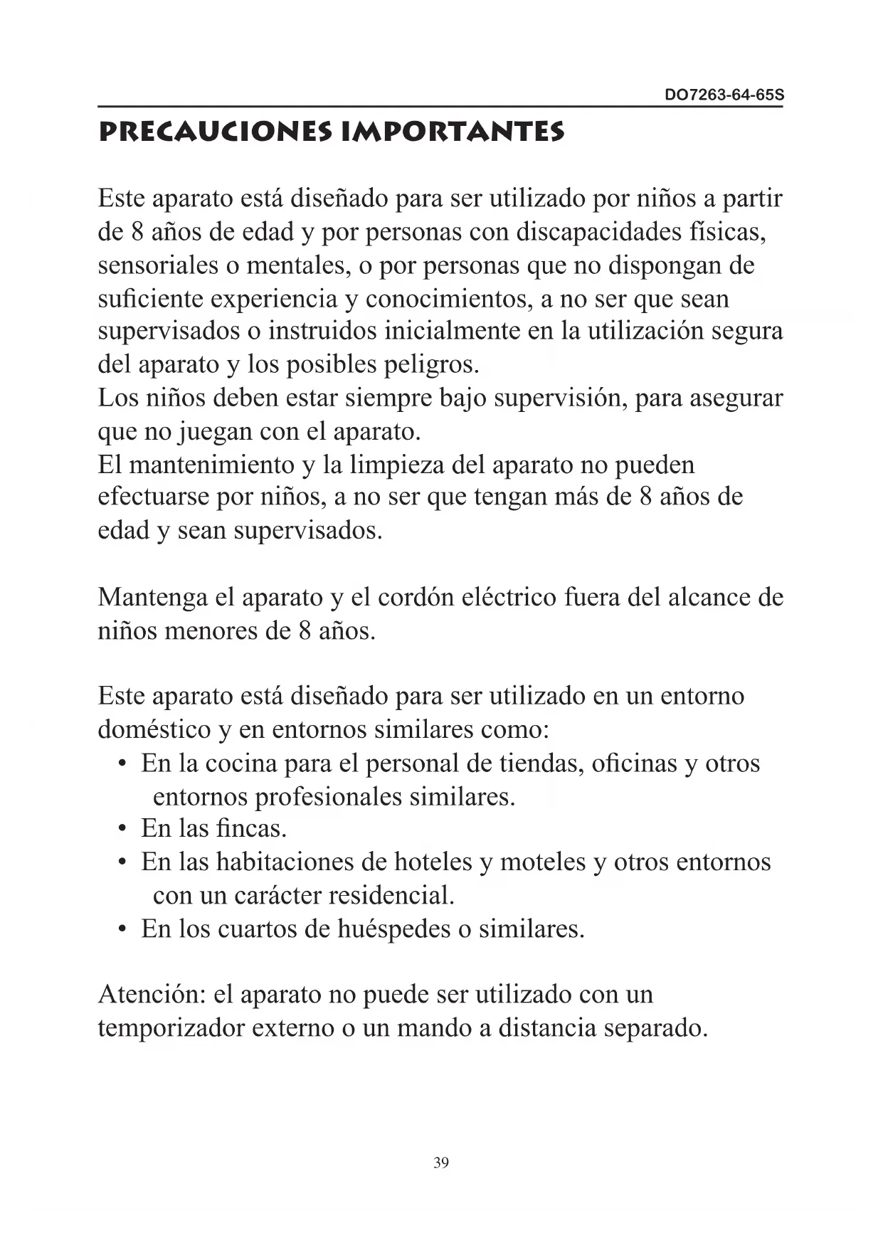 temporizador externo o un mando a distancia separado.DO7263-64-65S
