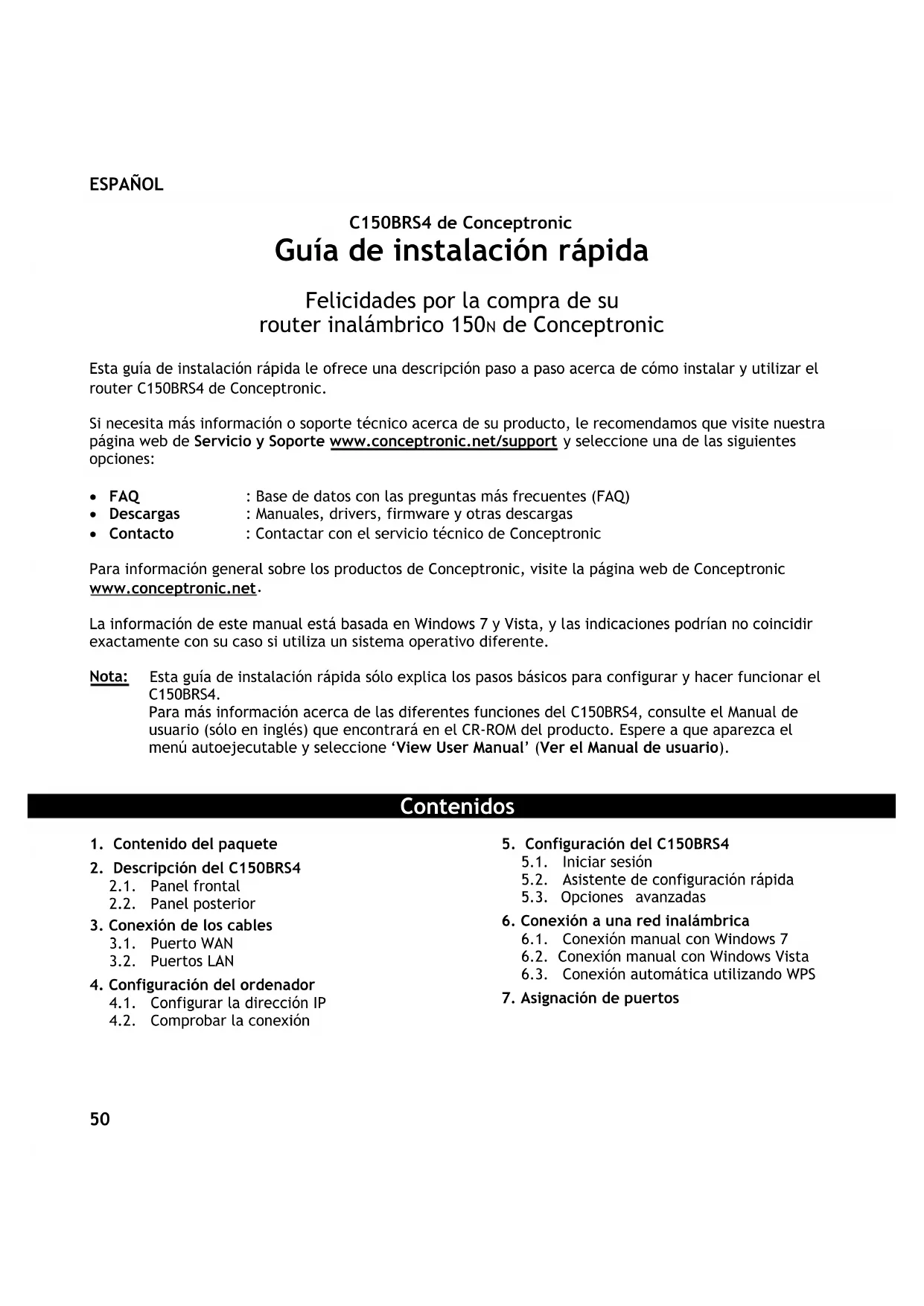 150N WL - Enrutador CONCEPTRONIC - Manual de uso y guía de instrucciones gratis