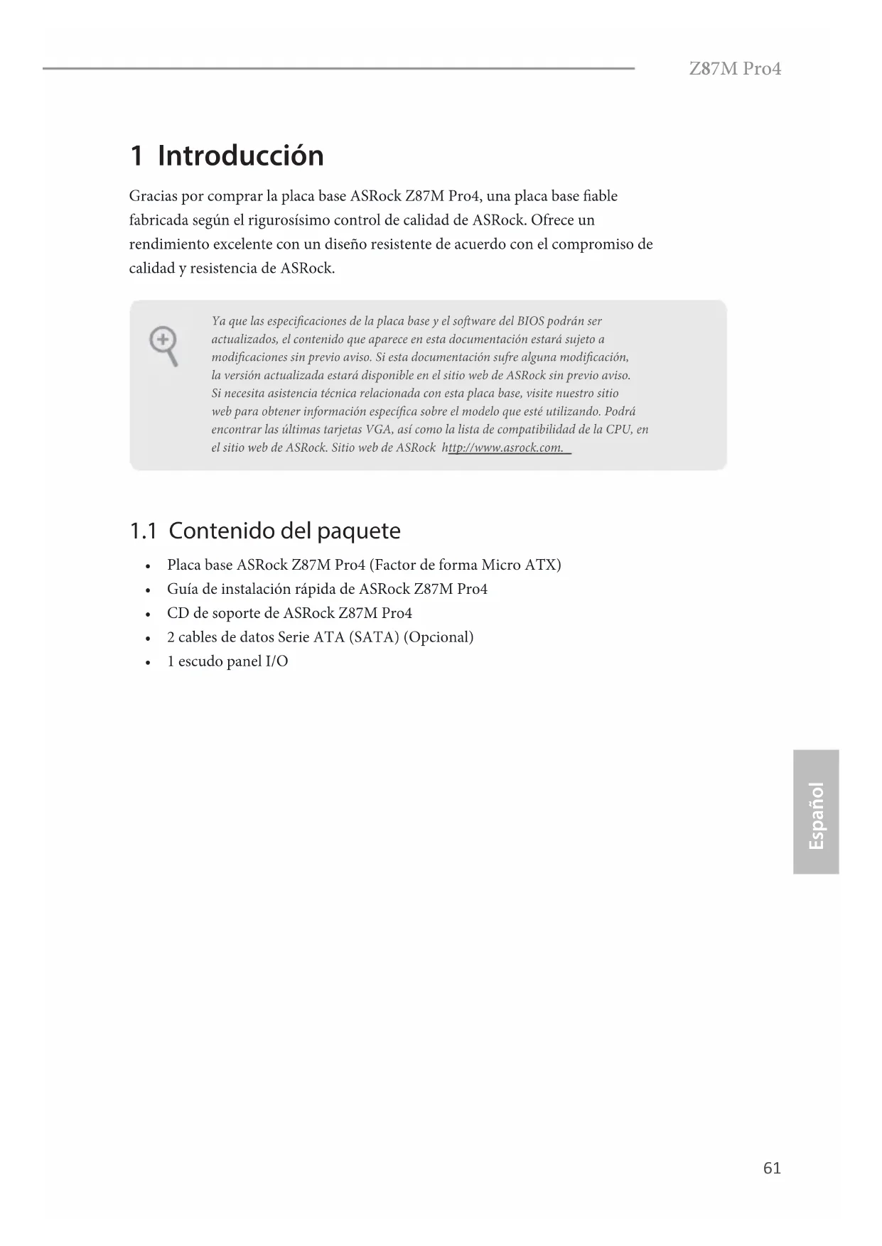 Gracias por comprar la placa base ASRock Z87M Pro4, una placa base able