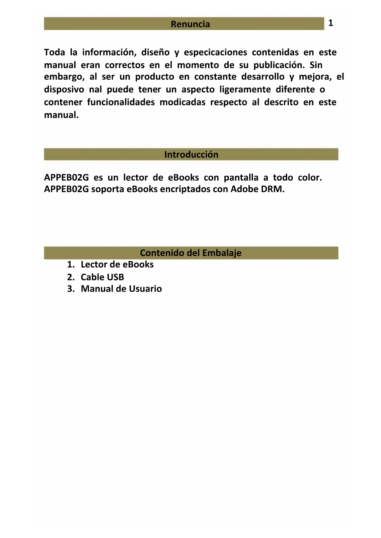 Contedio del Embalaje. 1