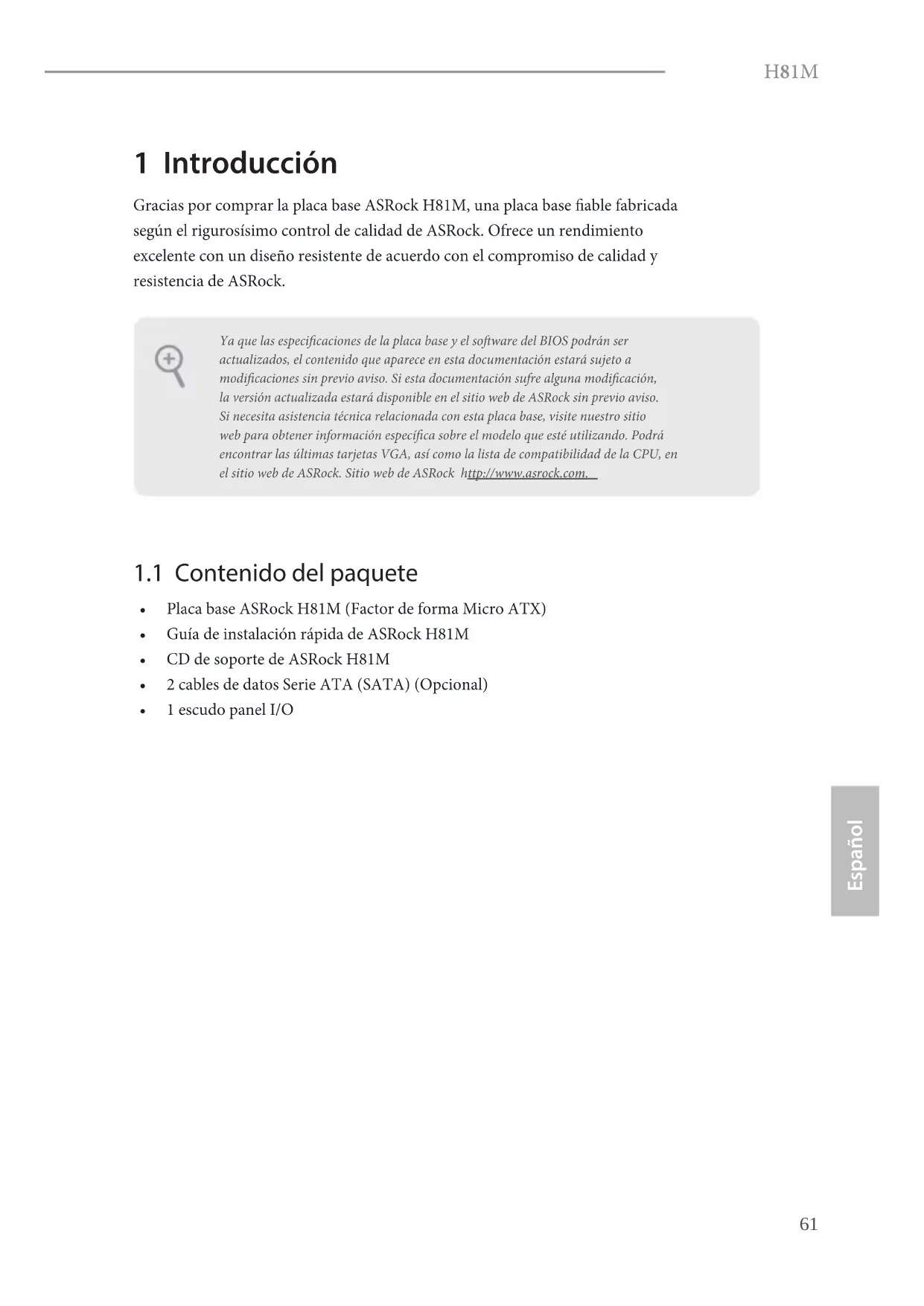 • Guía de instalación rápida de ASRock H81M