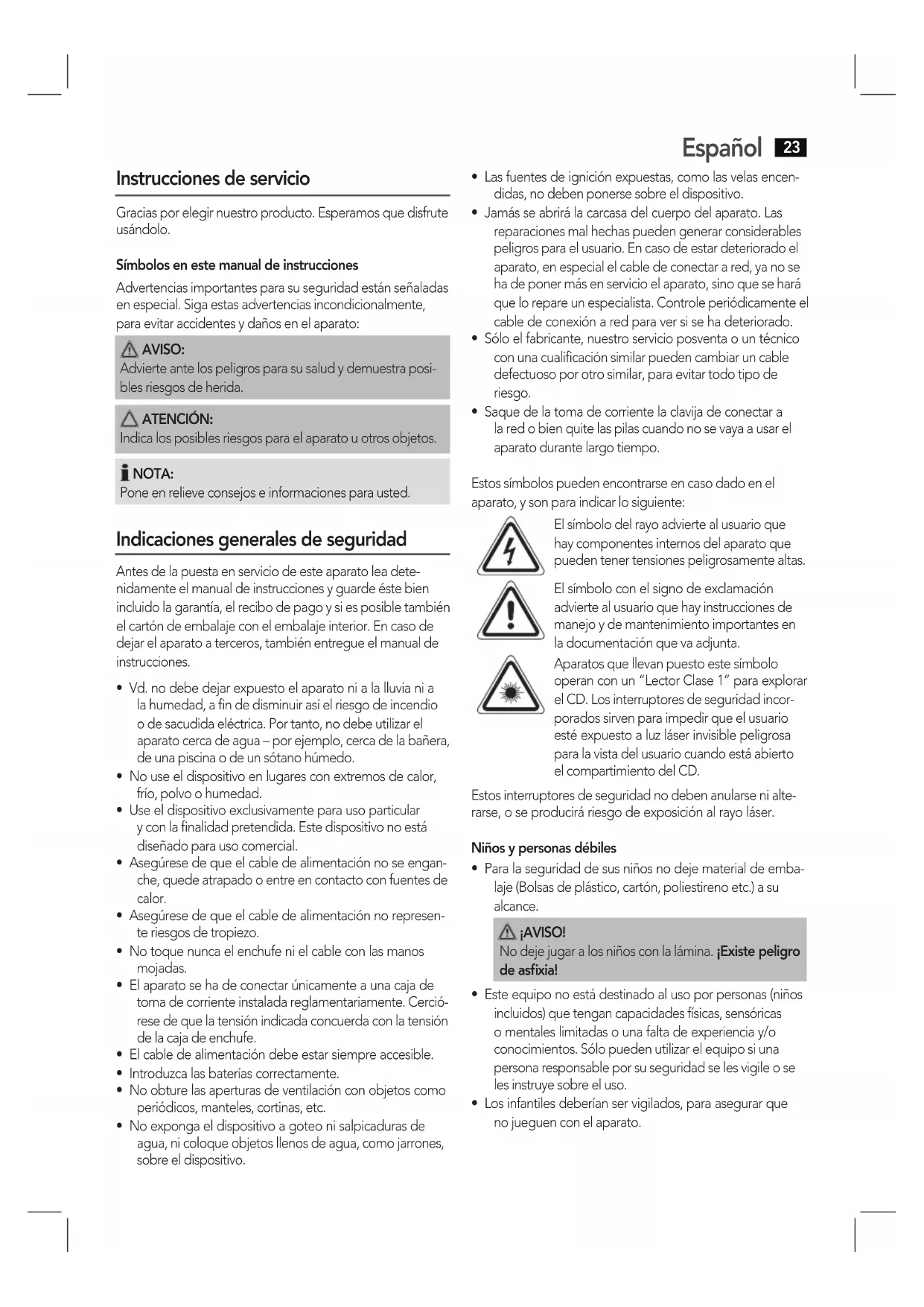 Instrucciones de servicio. Página 23
