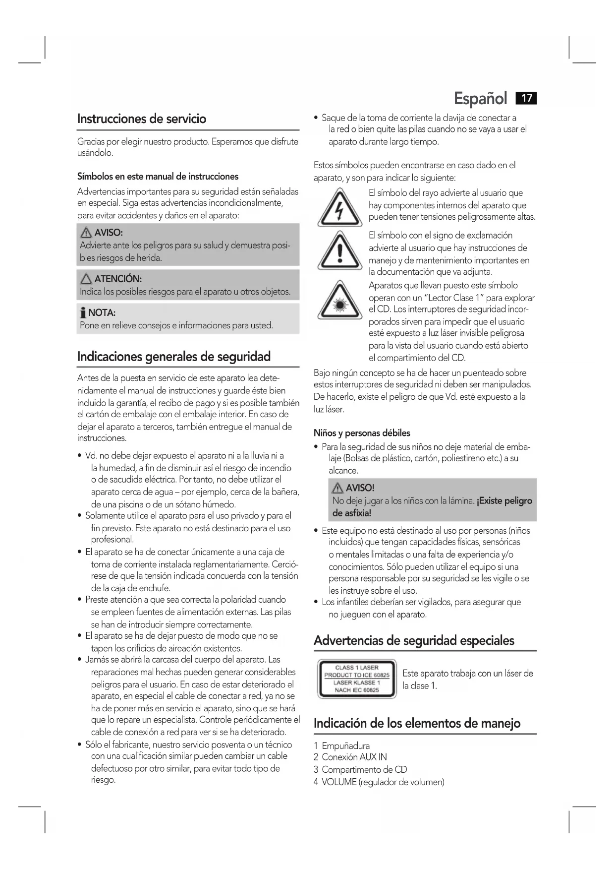 Instrucciones de servicio. Página 17