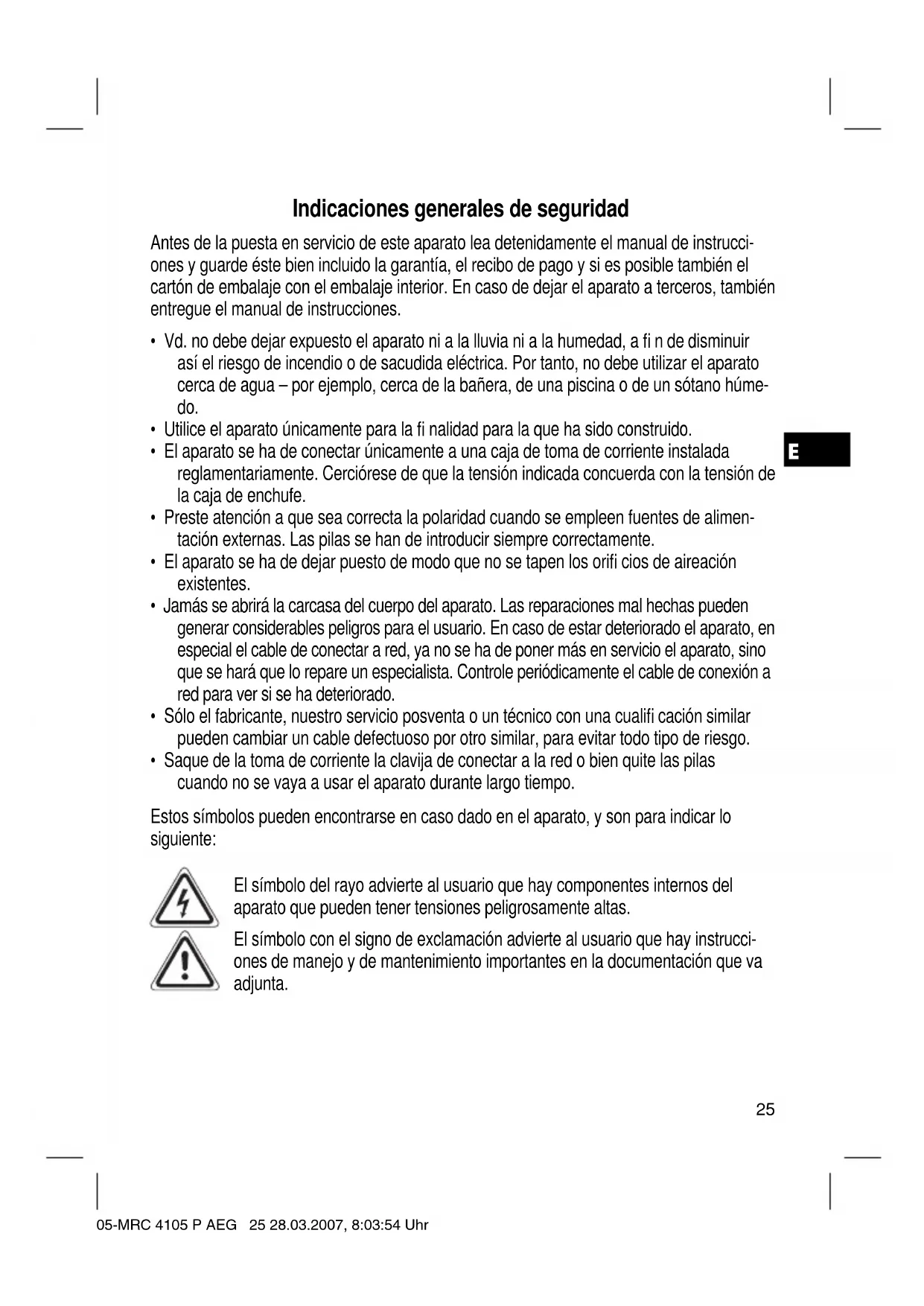 líquido en el aparato, puede llevar a daños serios. 05-MRC 4105 P AEG 26 28.03.2007, 8:03:55 UhrE