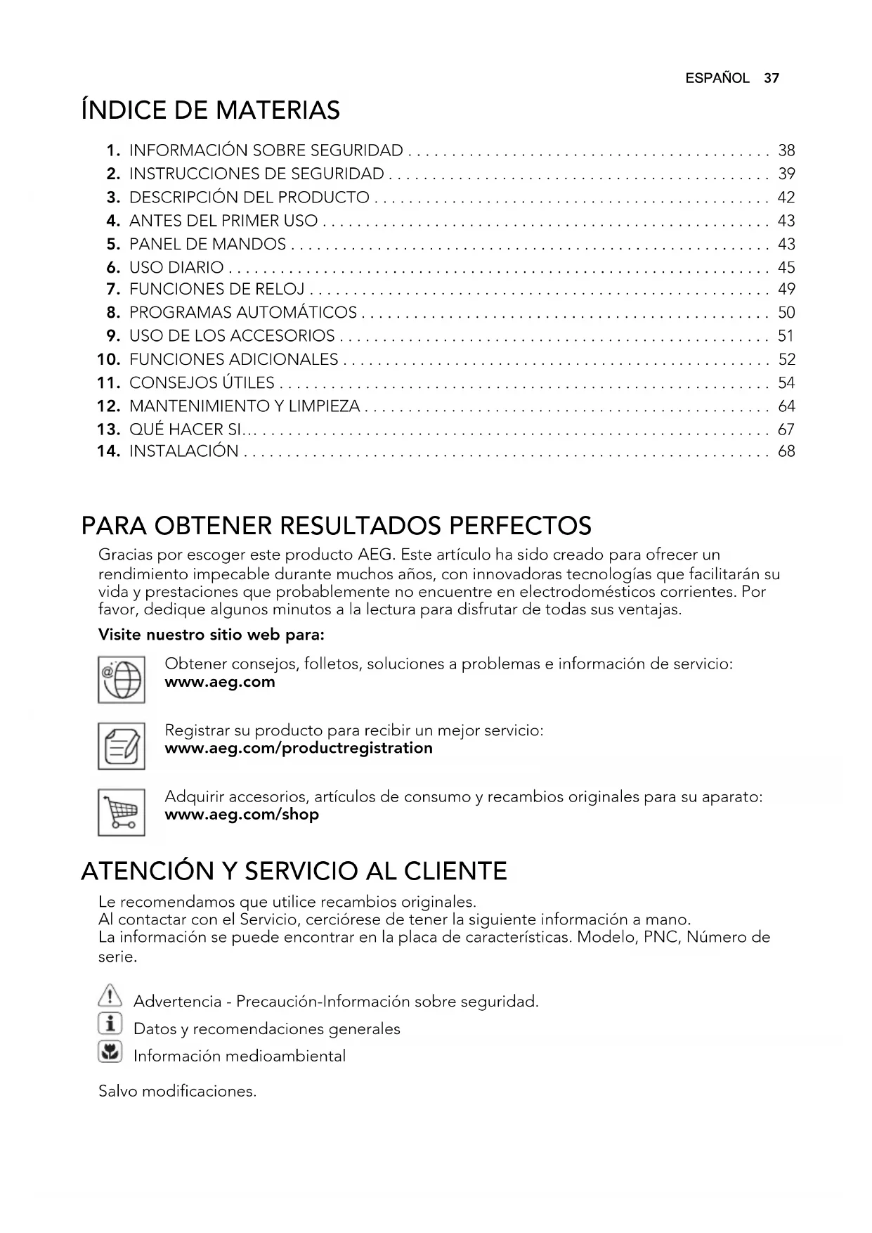 PARA OBTENER RESULTADOS PERFECTOS Gracias por escoger este producto AEG. Este artículo ha sido creado para ofrecer un