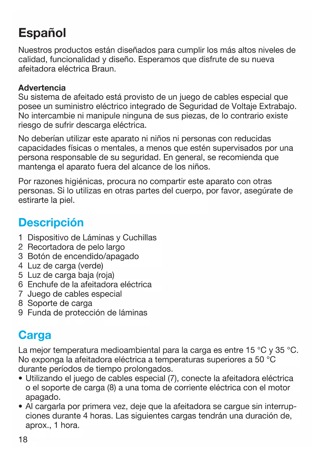 Para mantener la capacidad óptima de las baterías recargables, la afeitadora