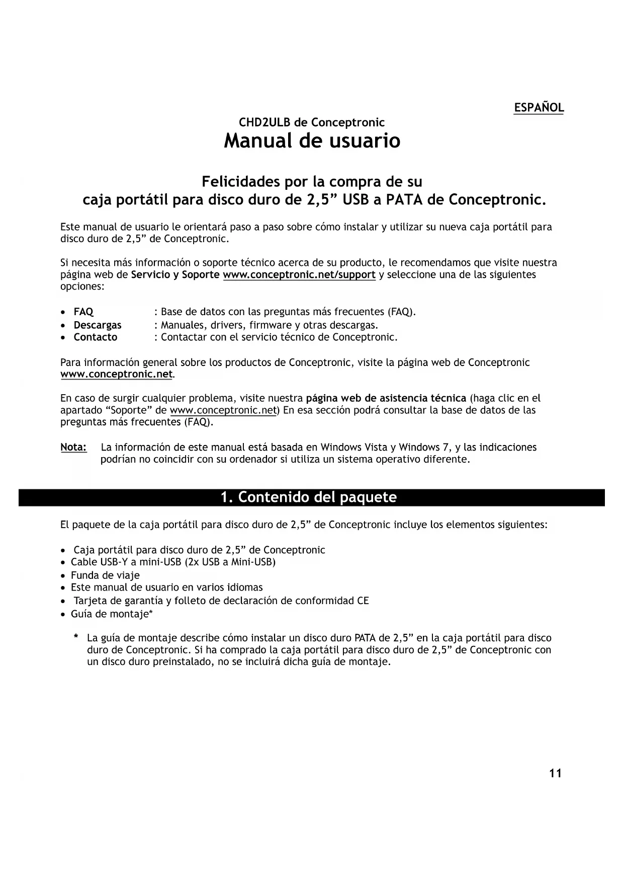 duro de Conceptronic. Si ha comprado la caja portátil para disco duro de 2,5” de Conceptronic con