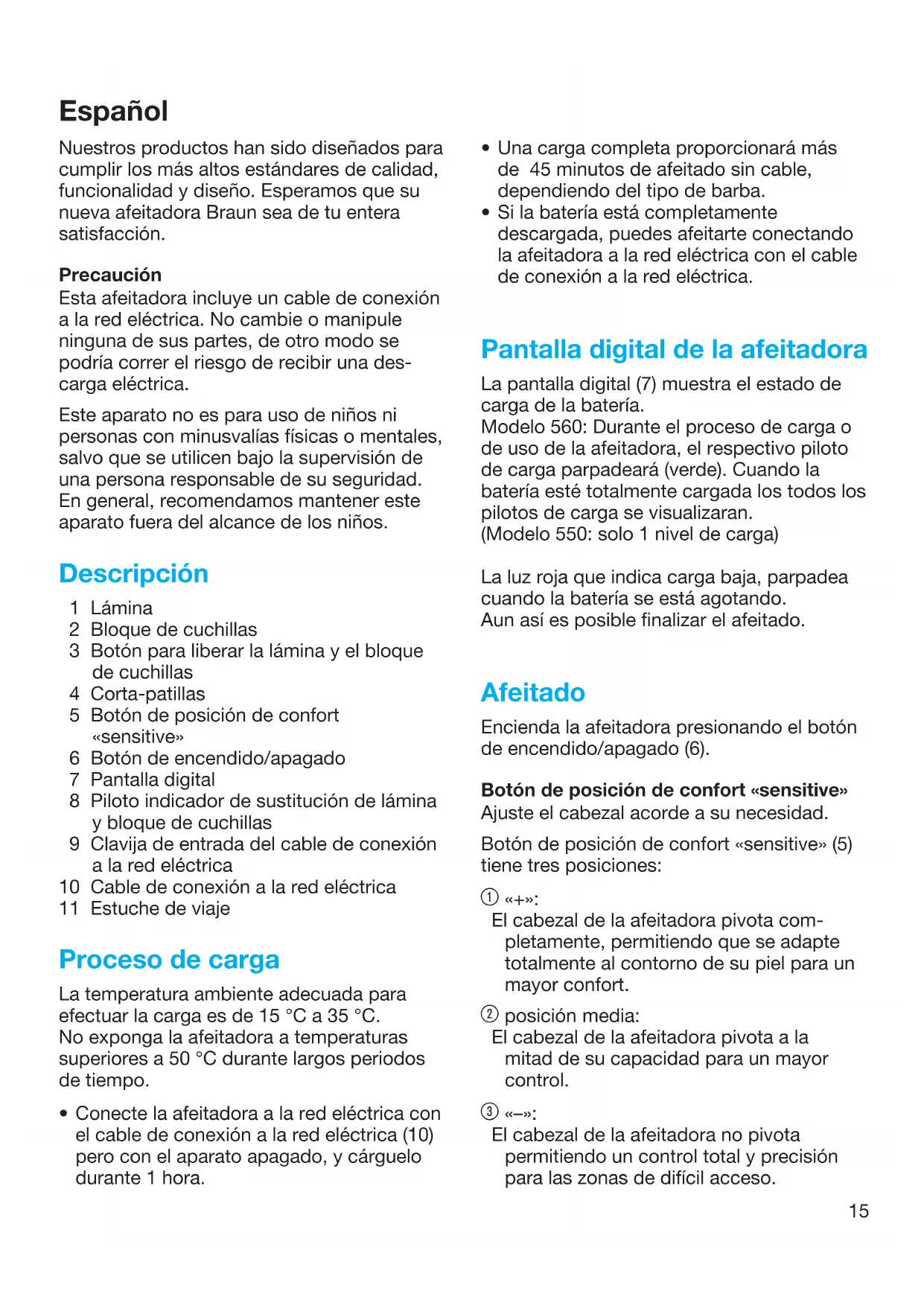 550cc Series 5 + CCR 2 - Navaja BRAUN - Manual de uso y guía de instrucciones gratis