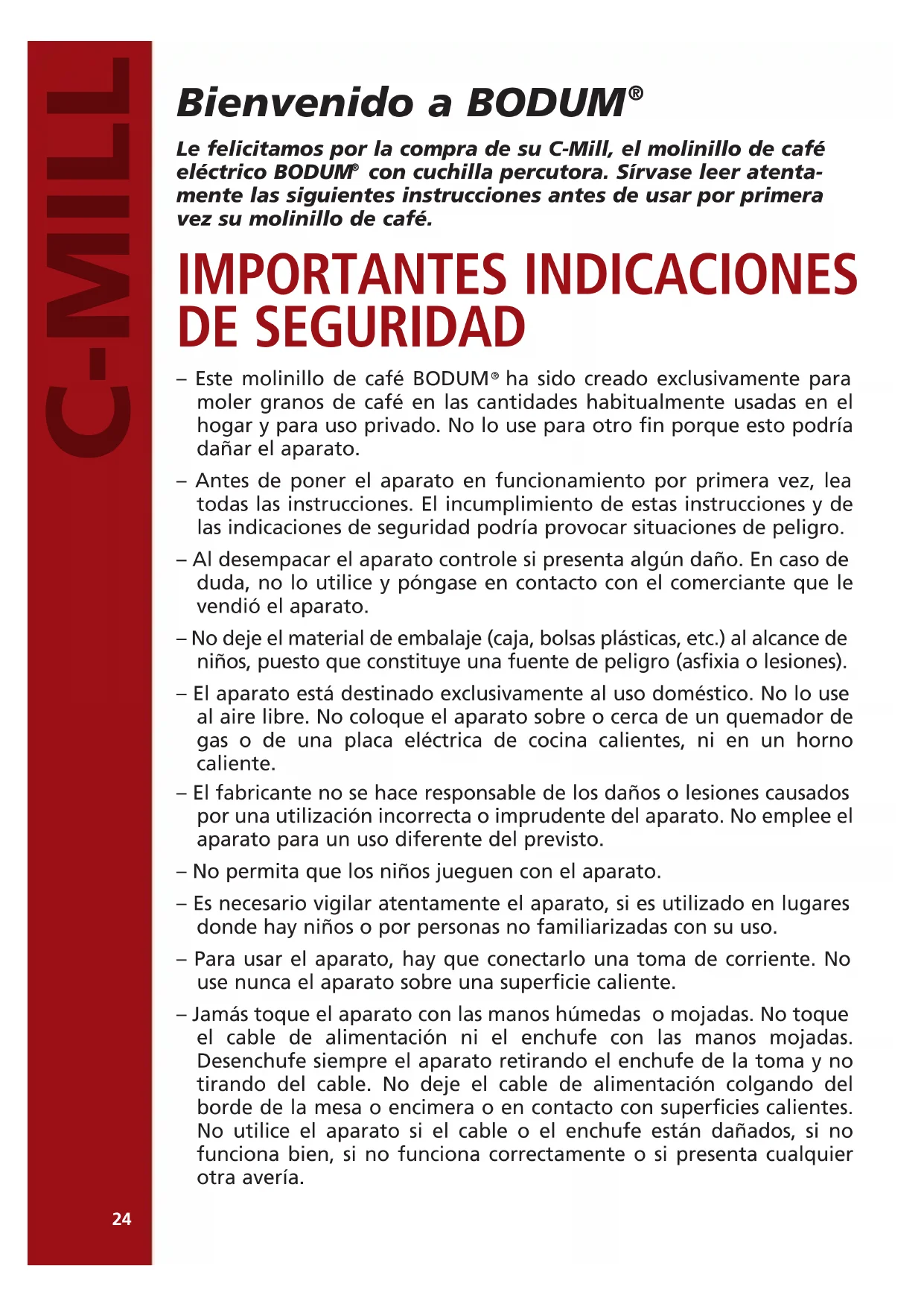 Le felicitamos por la compra de su C-Mill, el molinillo de café eléctrico BODUM