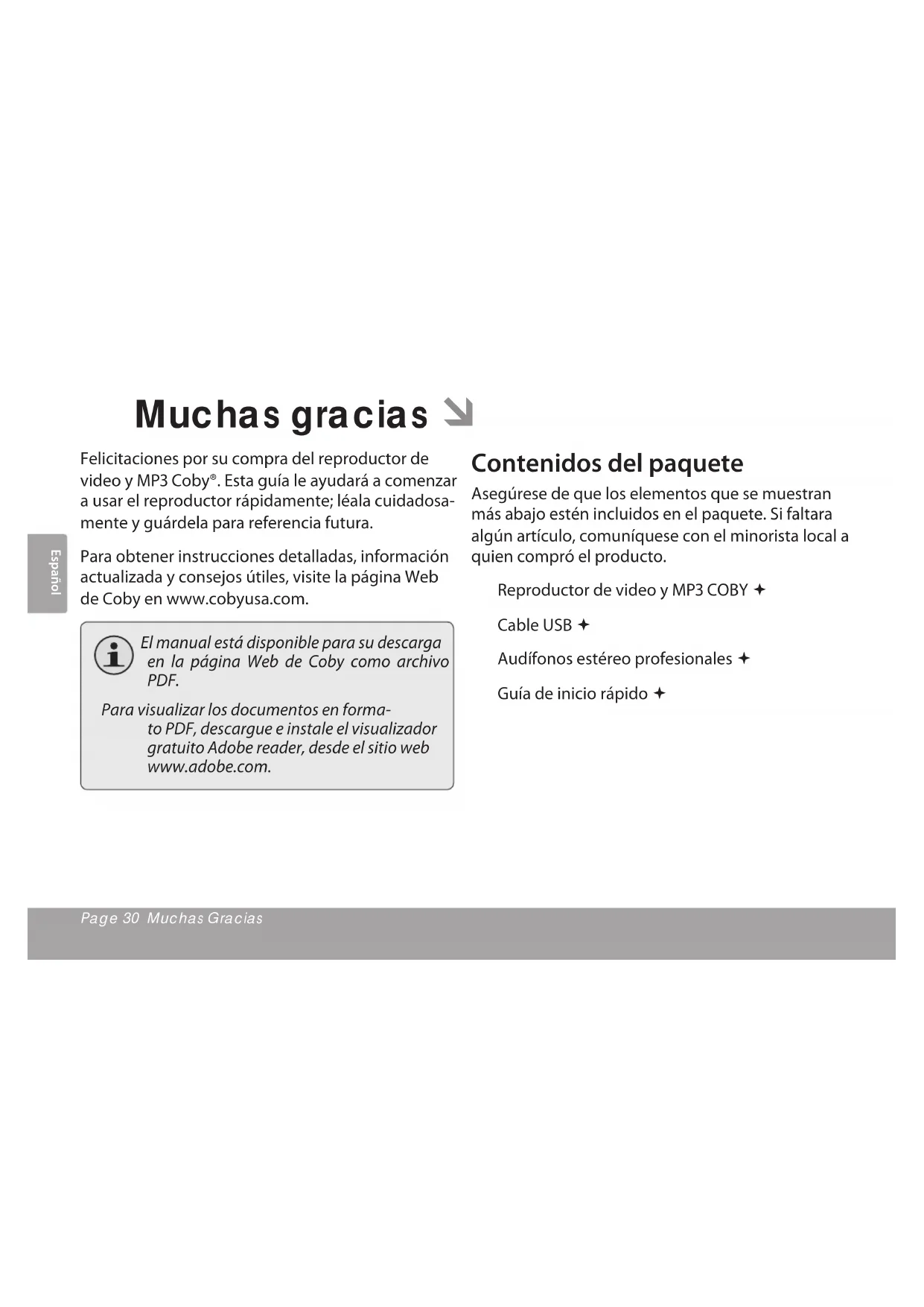 Reproductor de Video y MP3 Guía de Inicio Rápido ........................................Pagina 30