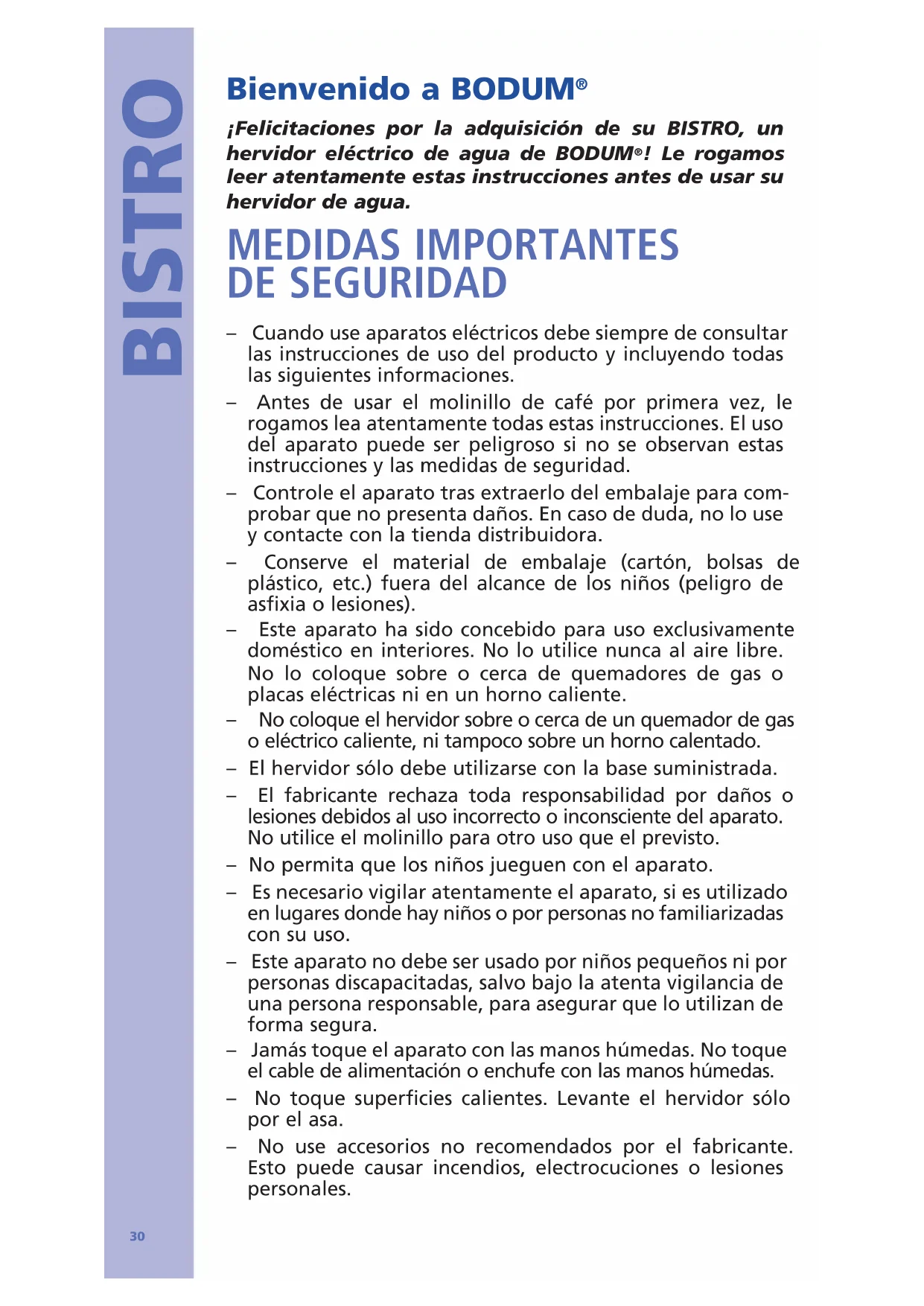 MANUAL DE USUARIO Bistro 11138 BODUM