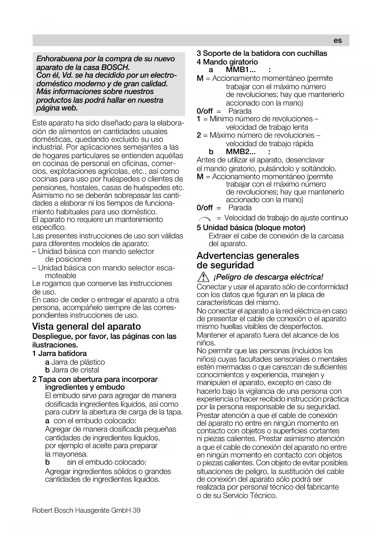 Encuentra gratis el manual del aparato MMB2001 BOSCH en formato PDF.