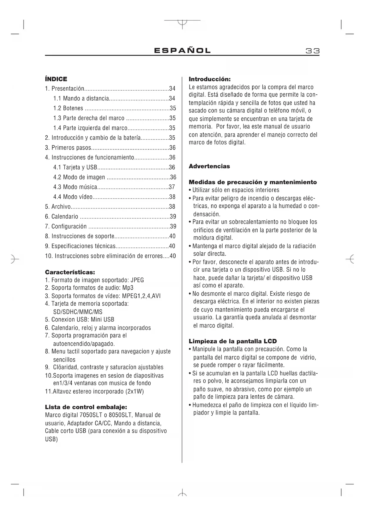 MANUAL DE USUARIO Digiframe 7050 SLT BRAUN