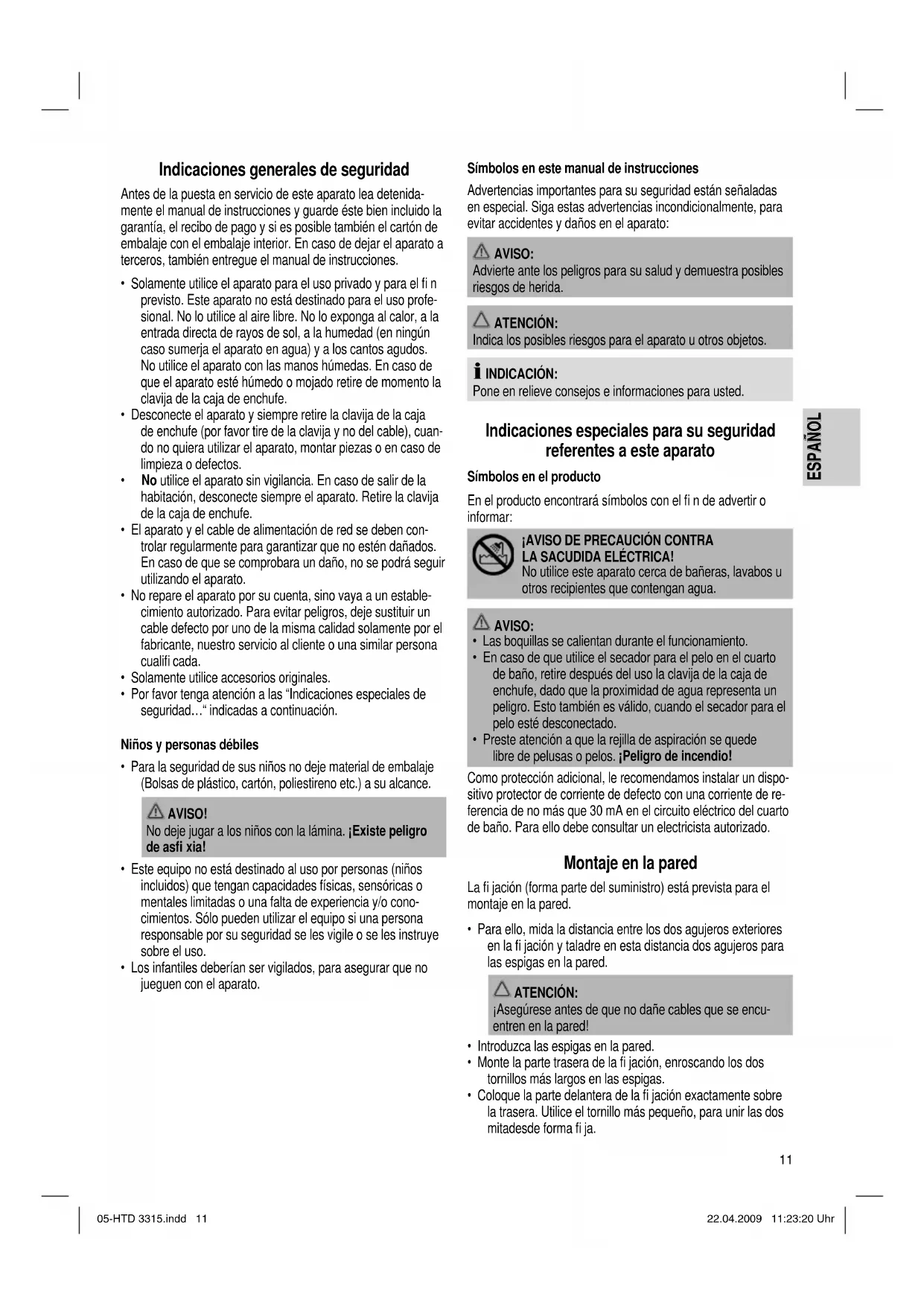 ESPAÑOL ESPAÑOL Indicaciones generales de seguridad