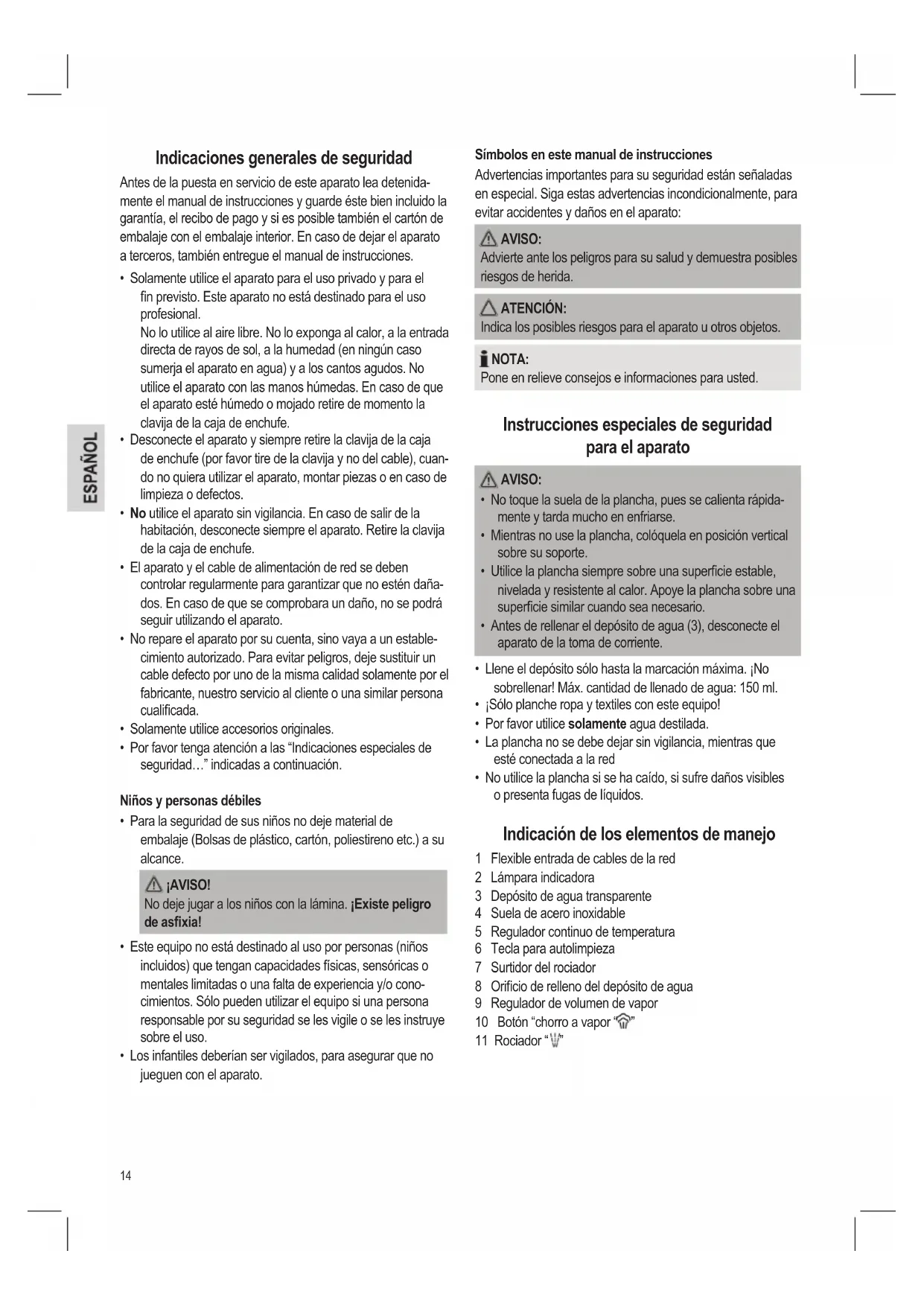 Indicaciones generales de seguridad