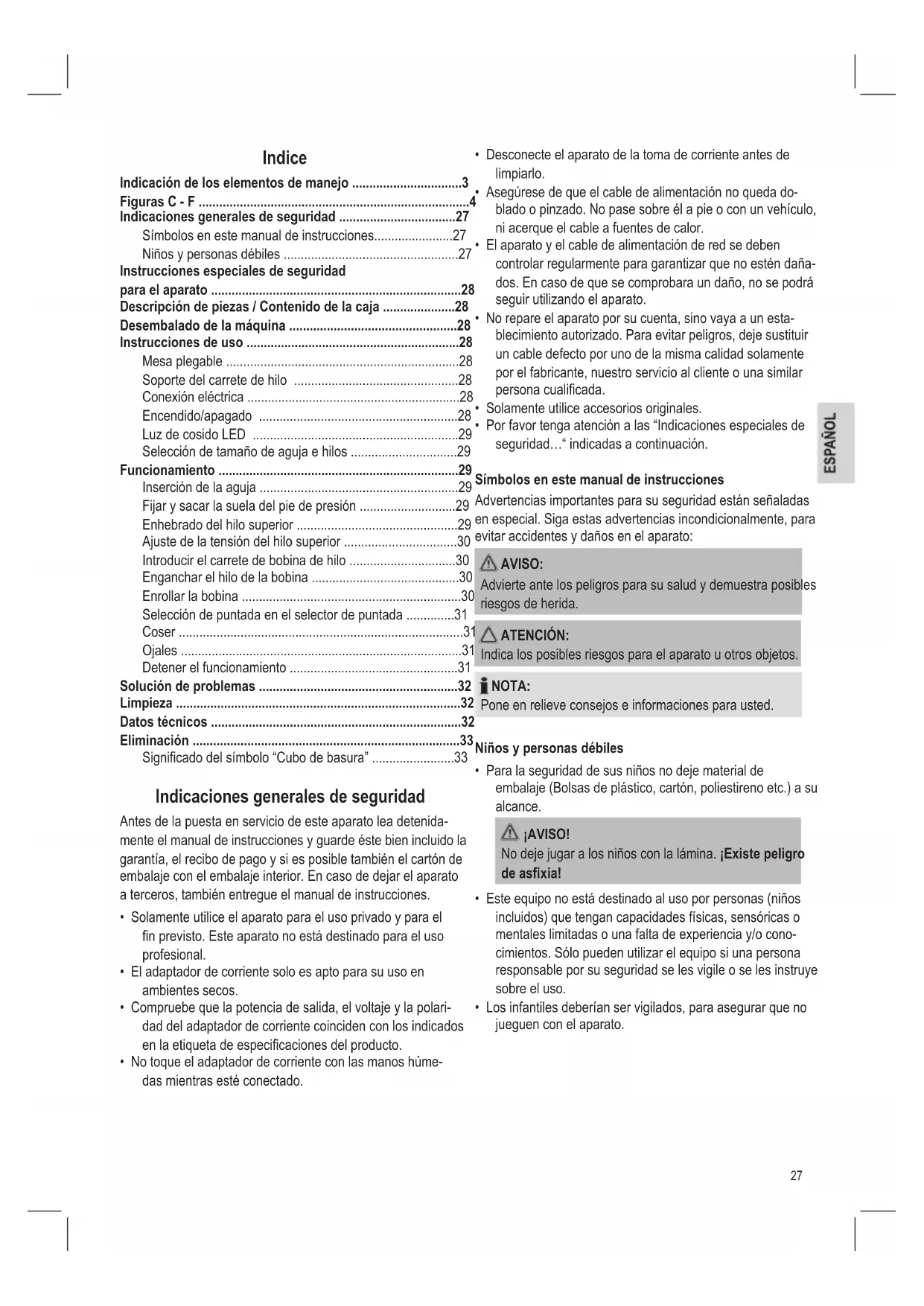 Indicaciones generales de seguridad 27