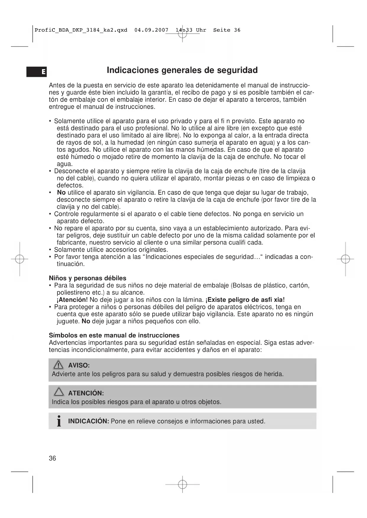 ProfiC_BDA_DKP_3184_ka2.qxd 04.09.2007 14:33 Uhr Seite 36Indicaciones especiales de seguridad