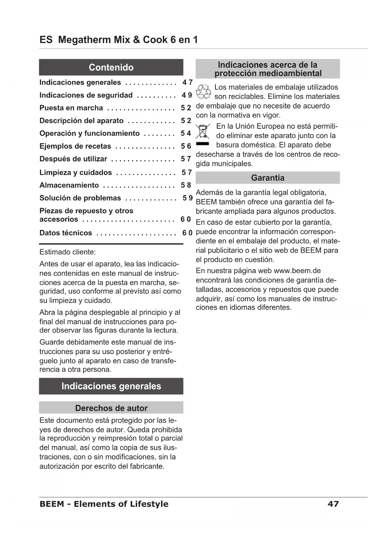 Indicaciones generales 47