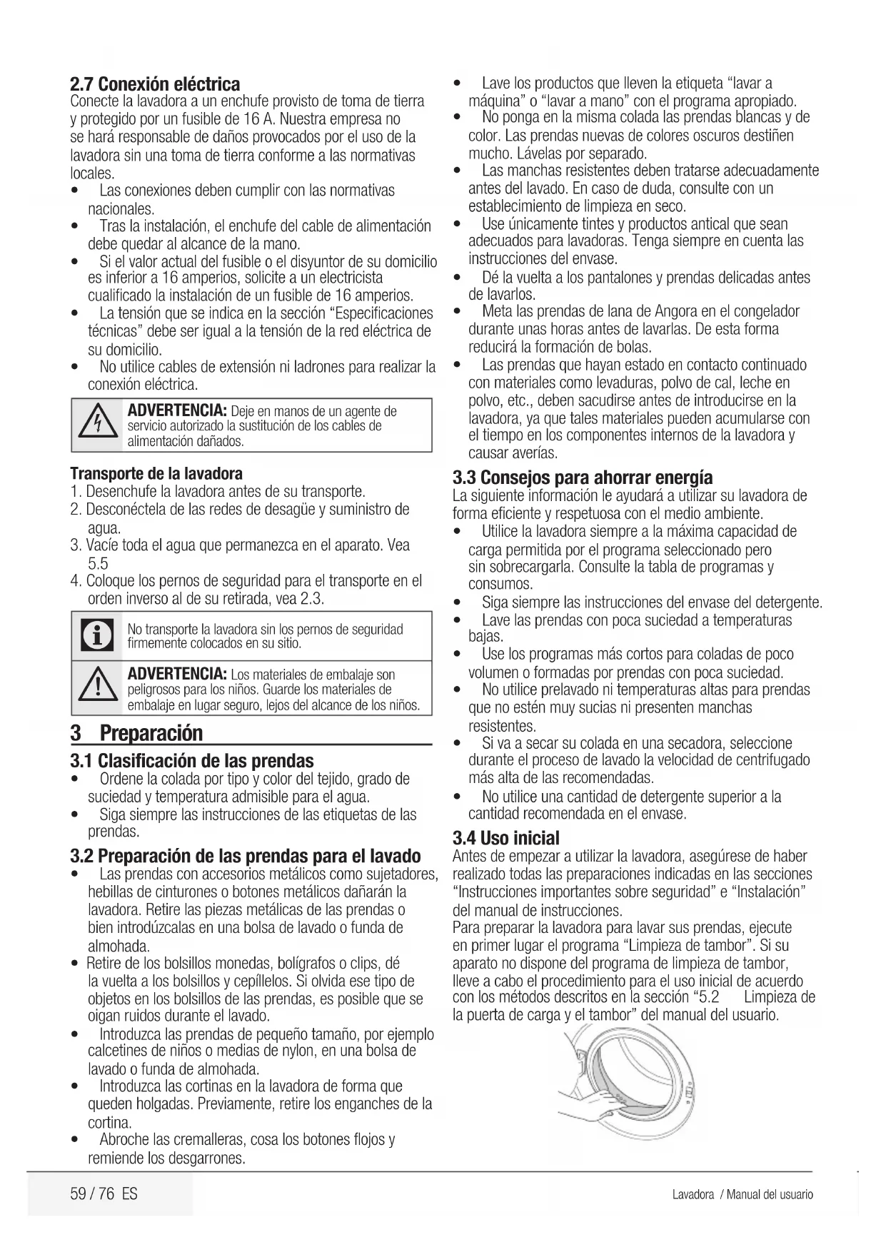Número del documento56/76ES Lavadora / Manual del usuario 1 Instrucciones importantes para