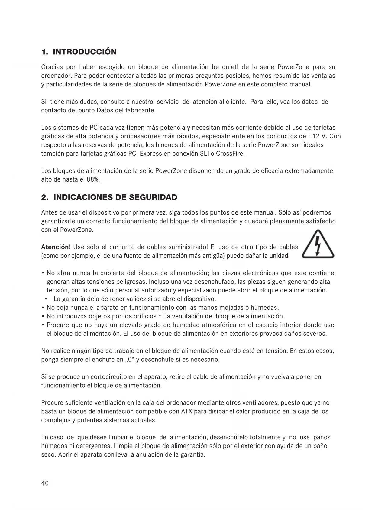 1. INTRODUCCIÓN Gracias por haber escogido un bloque de alimentación be quiet! de la serie PowerZone para su