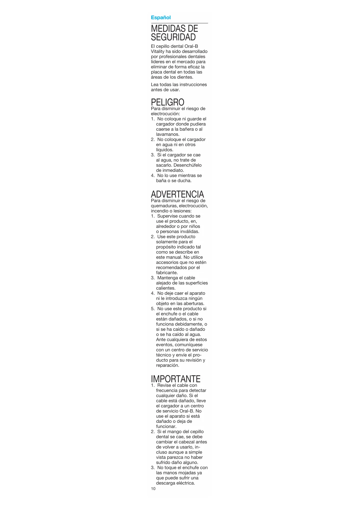 En caso de que este producto requiera servicio técnico, llame al 1-800-566-7252 para que lo remitan al centro de servicio Oral-B autorizado de su localidad.