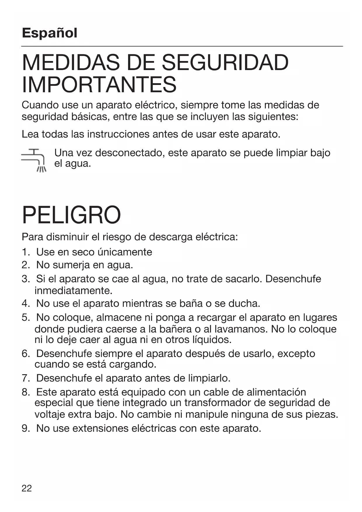 9. No use extensiones eléctricas con este aparato.