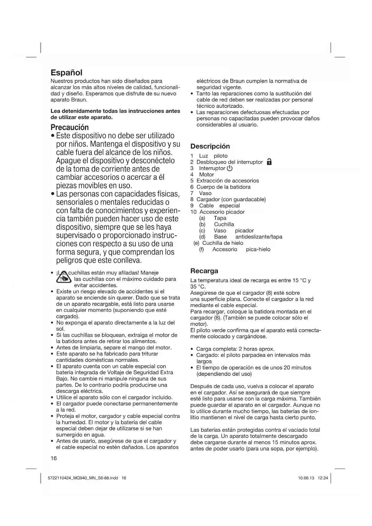 Encuentra gratis el manual del aparato MQ 940cc BRAUN en formato PDF.