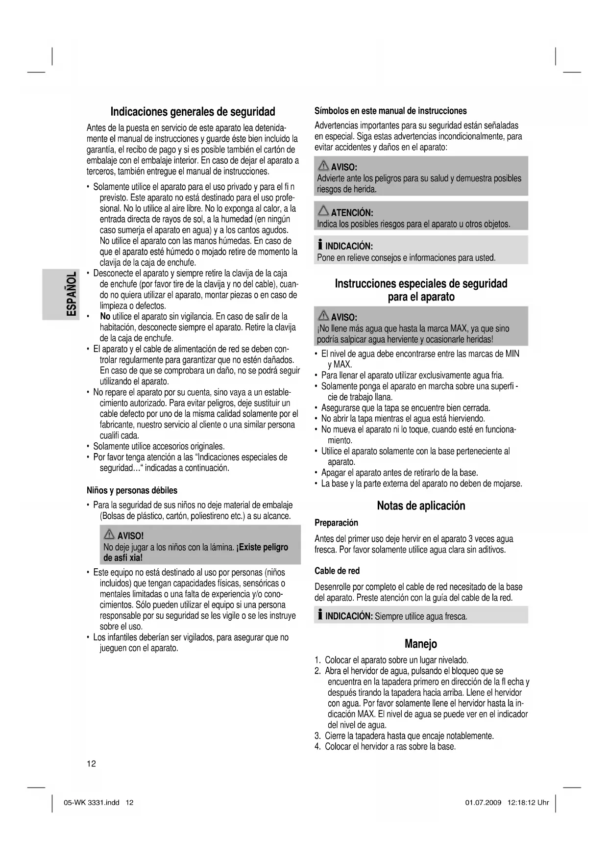 05-WK 3331.indd 1205-WK 3331.indd 12 01.07.2009 12:18:12 Uhr01.07.2009 12:18:12 Uhr13 ESPAÑOL ESPAÑOL