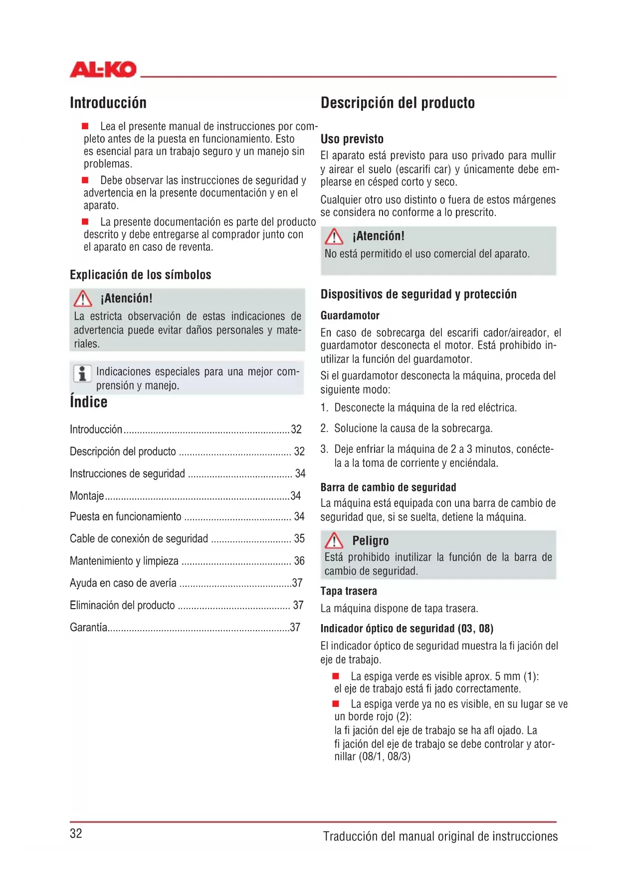 Combi Care 38 E - Cortadora de césped AL-KO - Manual de uso y guía de instrucciones gratis