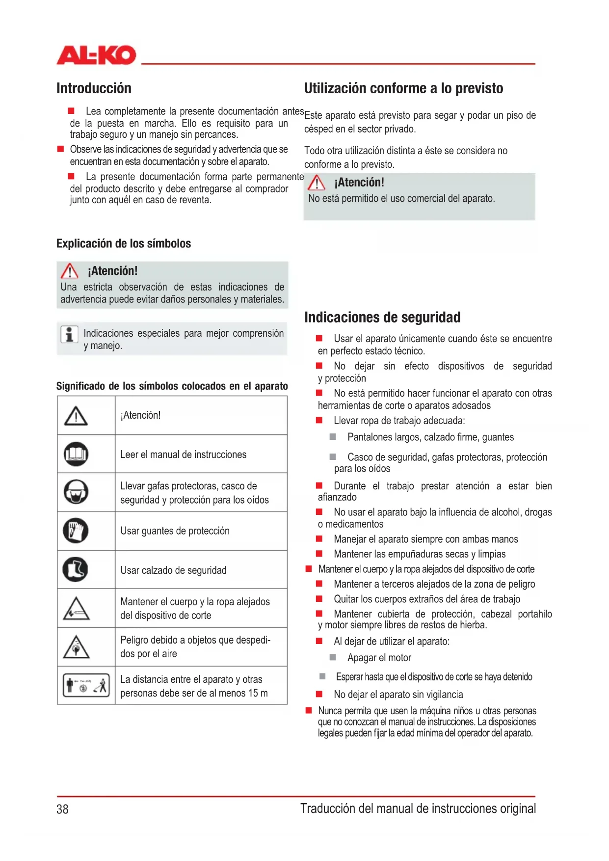 Traducción del manual de instrucciones original