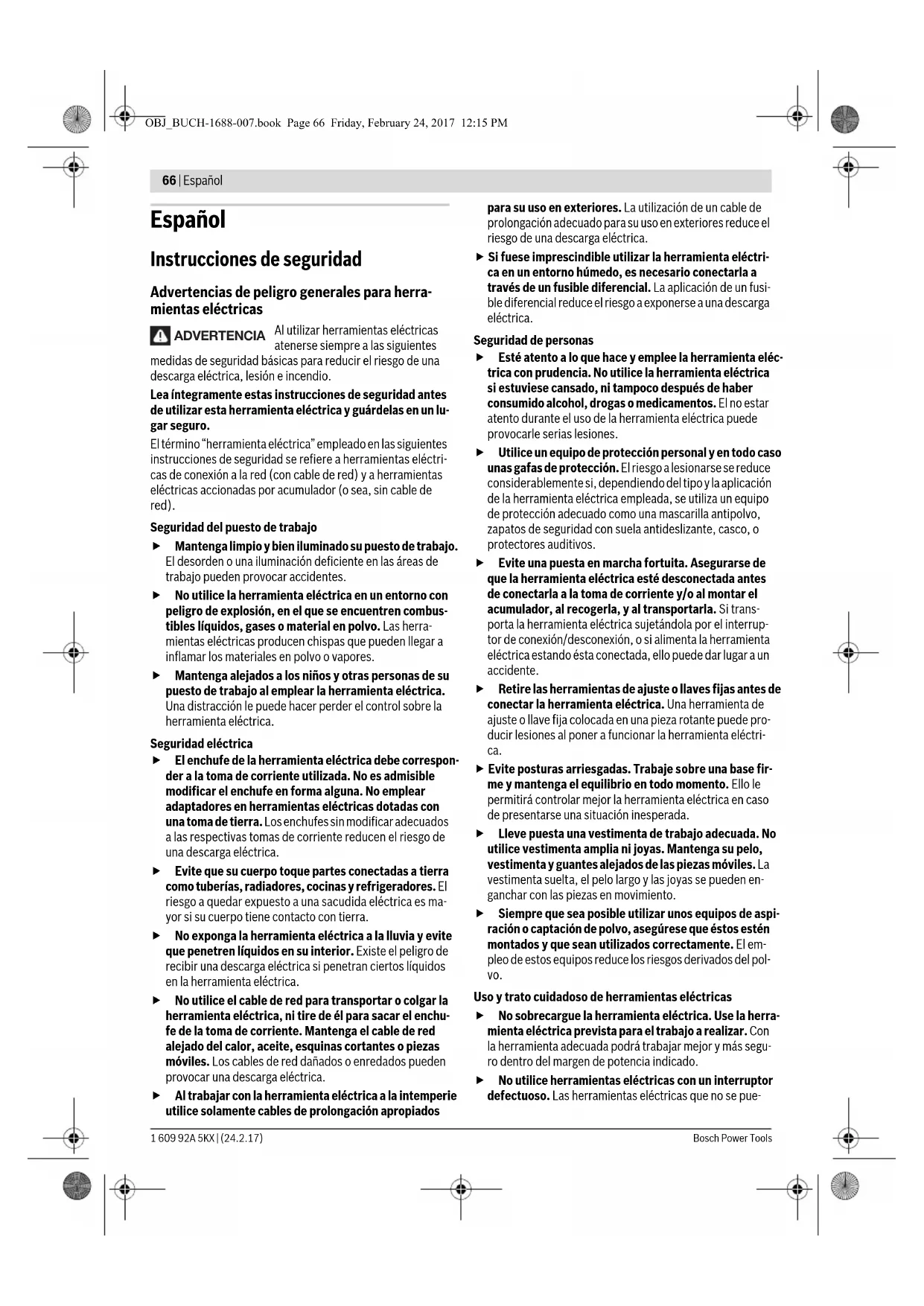OBJ_BUCH-1688-007.book Page 65 Friday, February 24, 2017 12:15 PM66 | Español 1 609 92A 5KX | (24.2.17)Bosch Power Tools Español