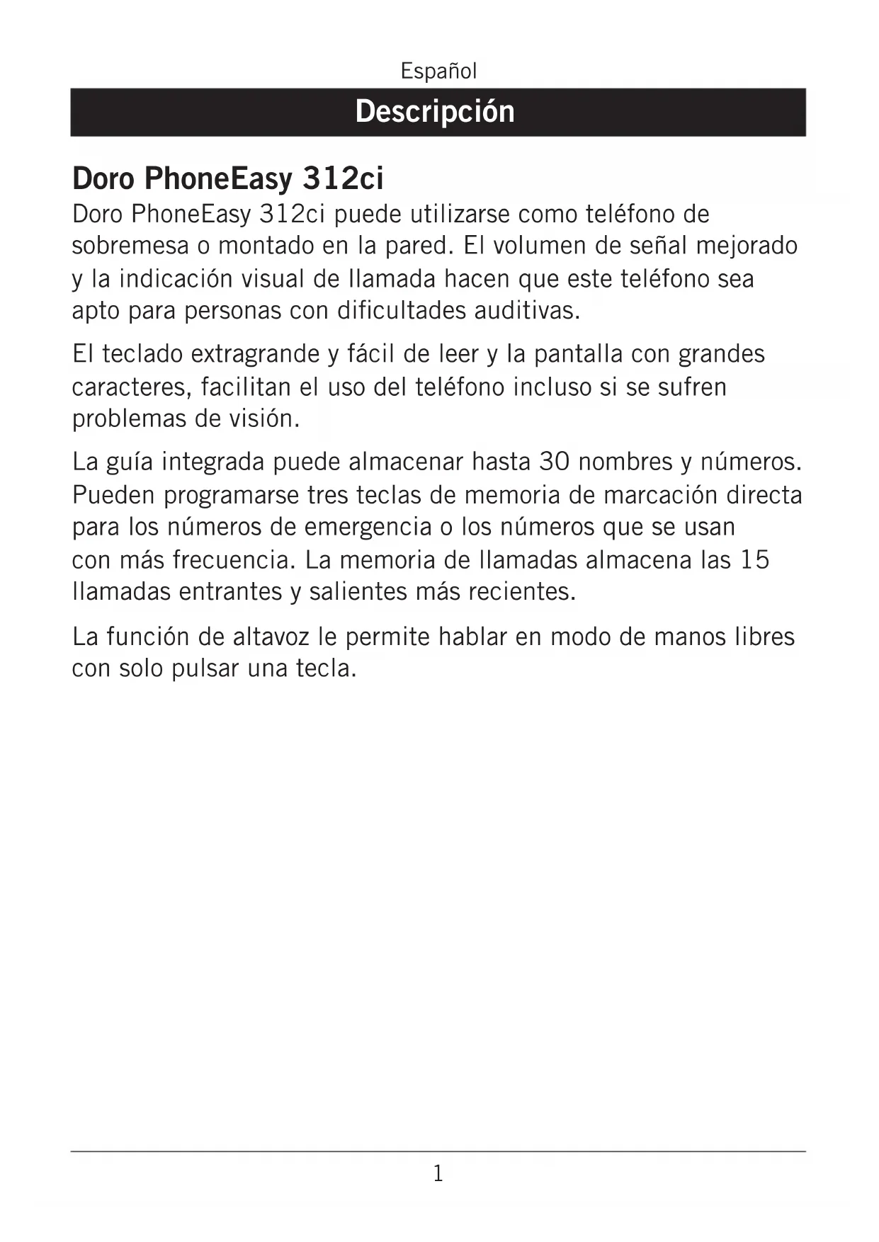 PhoneEasy 312ci - Teléfono DORO - Manual de uso y guía de instrucciones gratis