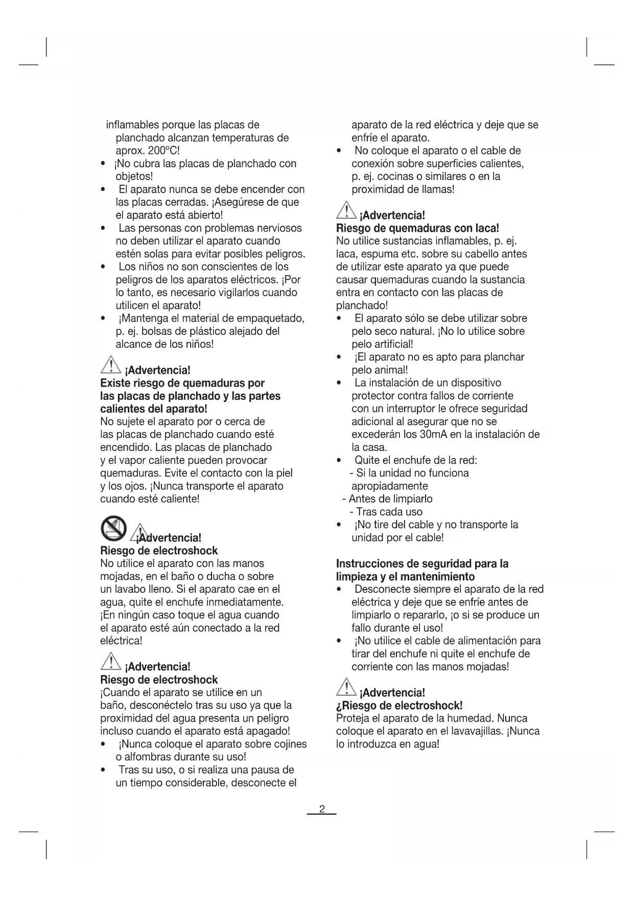 • ¡Peligrodeelectroshock!