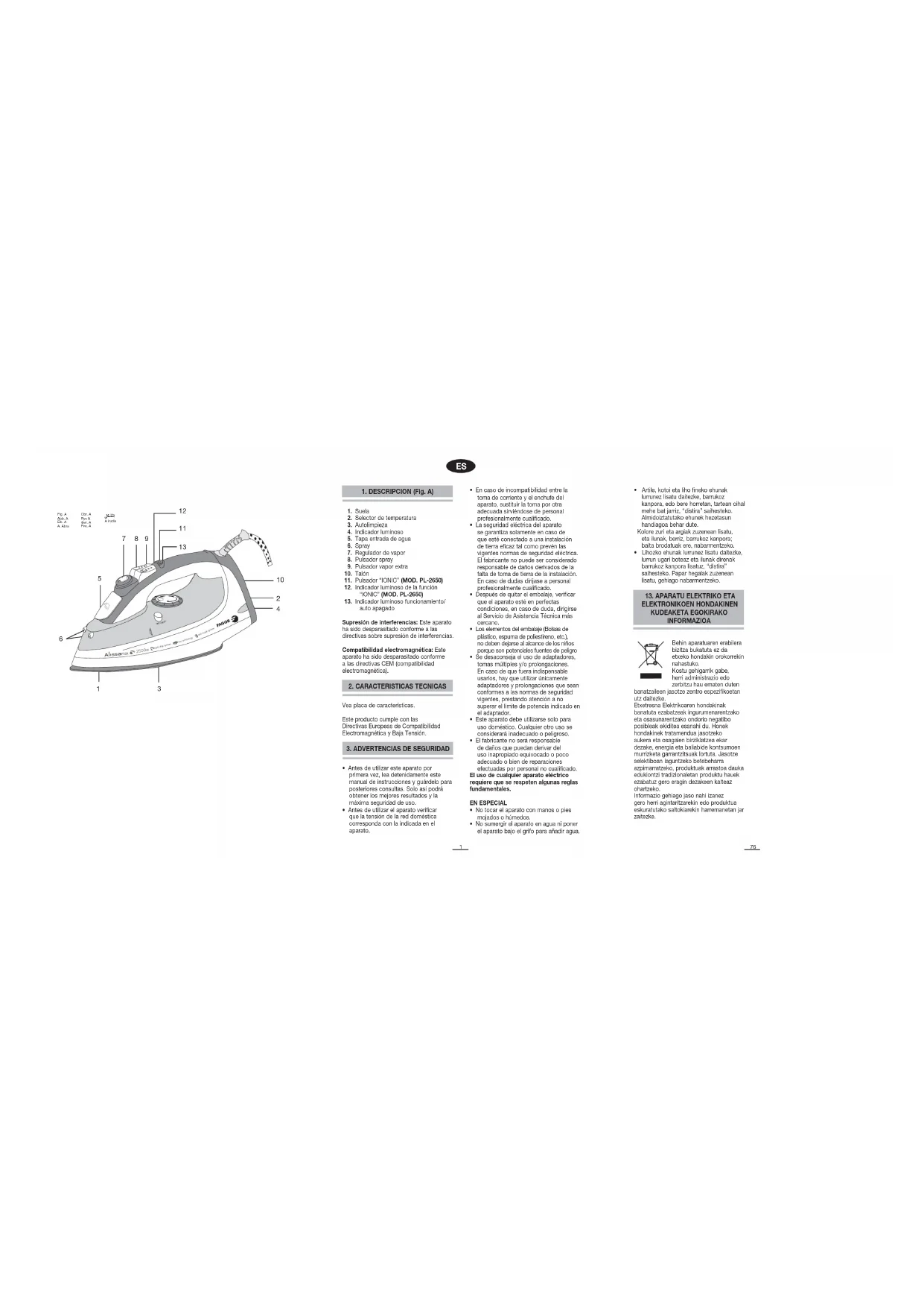 PL2650 - Hierro FAGOR - Manual de uso y guía de instrucciones gratis