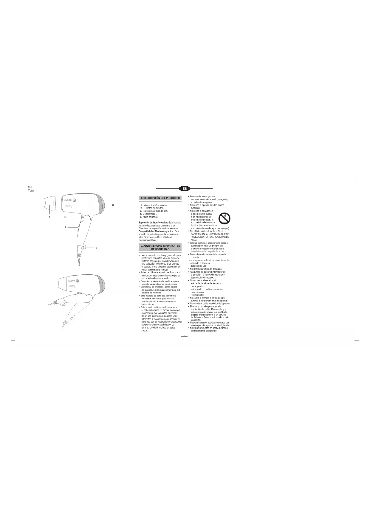 SP1825AA - Secador de pelo FAGOR - Manual de uso y guía de instrucciones gratis