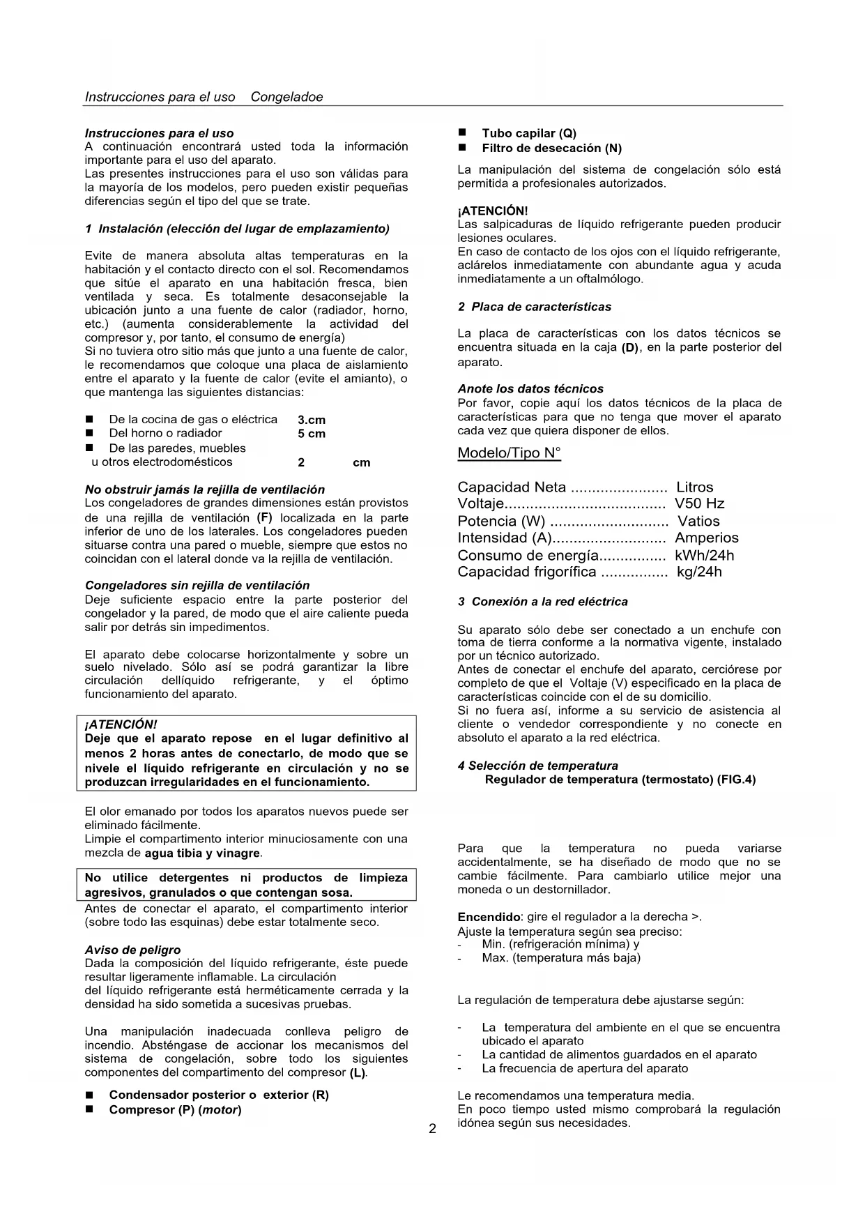 Verde = Control de uso / Roja = ALARMA / Amarillo = Función de SUPERCONGELACIÓN L M N O P Q R A B D E G K C E S T F H I FIG. 3