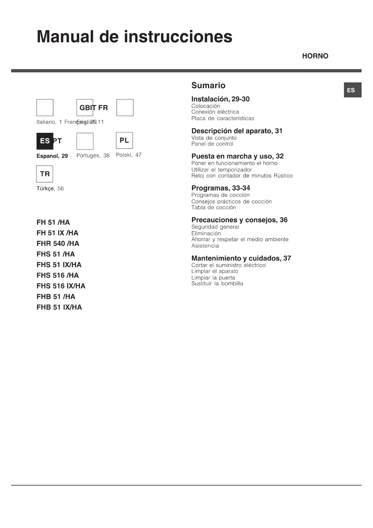 FH 51 IXHA - Horno HOTPOINT-ARISTON - Manual de uso y guía de instrucciones gratis