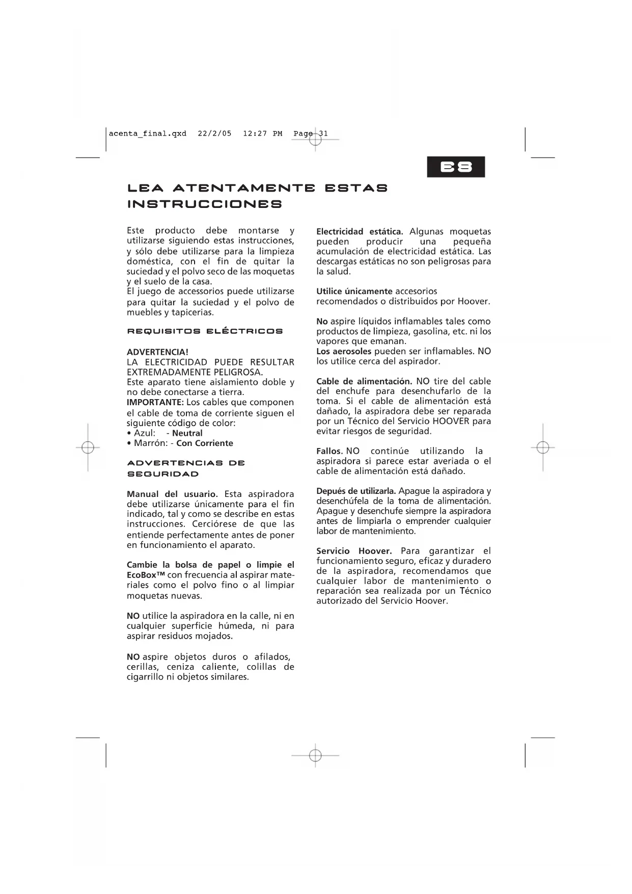 acenta_final.qxd 22/2/05 12:27 PM Page 34ES El sistema EcoBox™ exclusivo de HOOVER está hecho de un material especial de