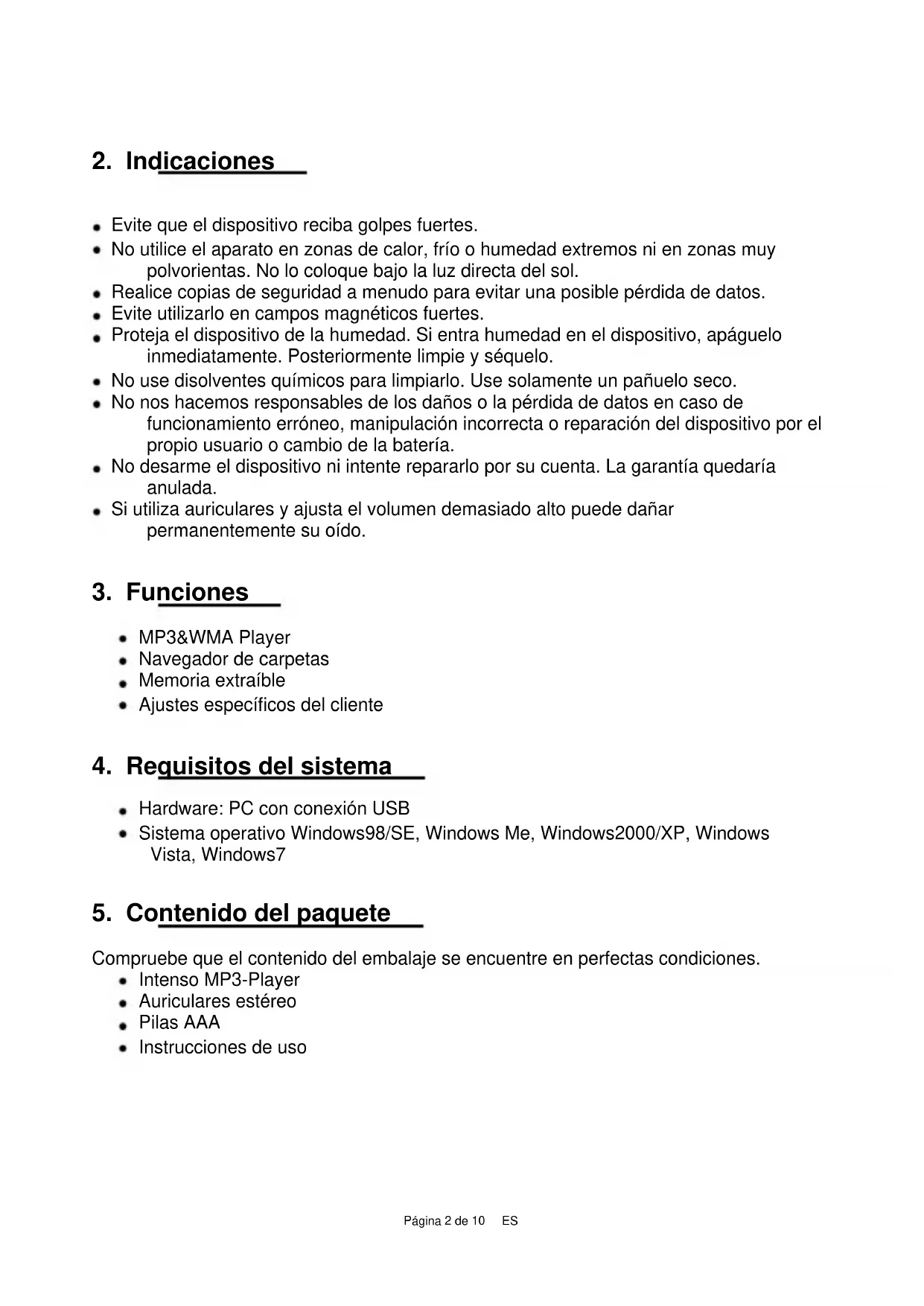 Instrucciones de uso Págrina 1-10 ES
